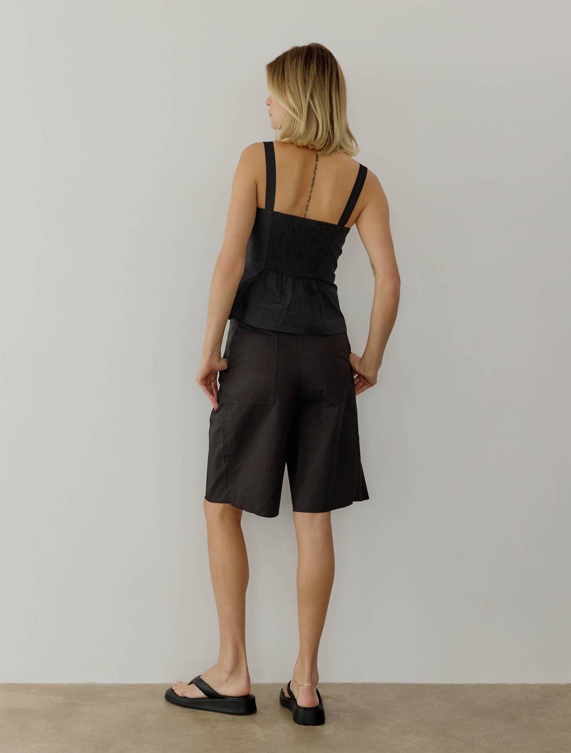 Discover the ultimate warm-weather essential with these stylish women's Bermuda shorts, skillfully crafted to provide a harmonious fusion of fashion and function. These wide-leg Bermuda shorts are crafted from a cotton blend with a self-composition of 65% Cotton and 35% Tencel, featuring a raw edge hem and front pleats. The solid pattern offers a timeless look while pockets add functionality. Zip closure. Hand wash.