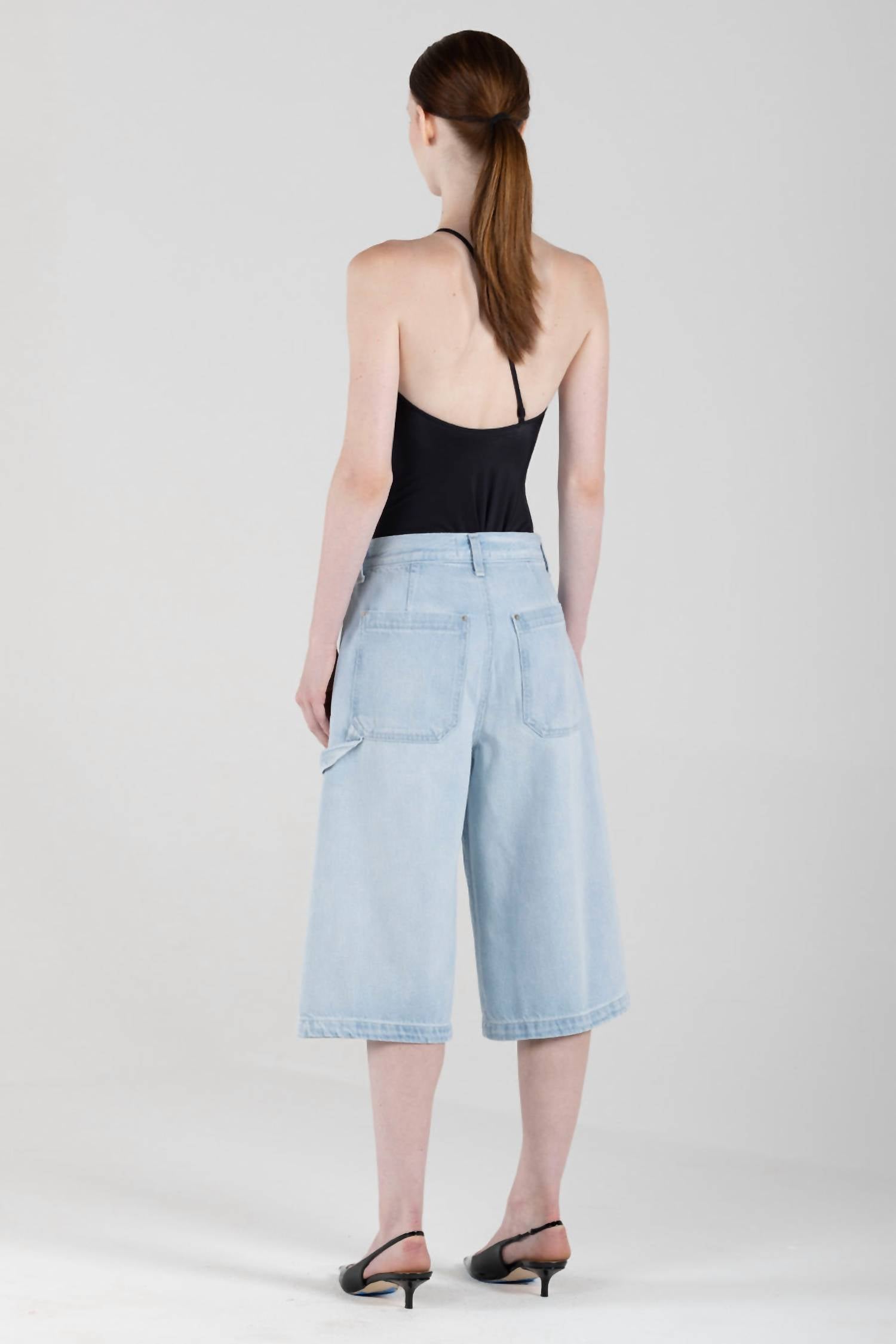 Discover the ultimate warm-weather essential with these stylish women's Bermuda shorts, skillfully crafted to provide a harmonious fusion of fashion and function. Reimagining the classic Bermuda, the Cedar Utility Short by ETICA brings chic utility details to your wardrobe with a textured cotton blend in a Cold Spring hue. Featuring an inseam of 16.5 inches and a convenient button closure, these shorts are designed with oversized pockets, triple needle stitching, rivets, and a carpenter's hammer loop. The fabric composition is 76% cotton and 24% Lyocell x Refibra, offering comfort and durability. For care, machine wash cold with like colors, line dry, and use a warm iron if needed.