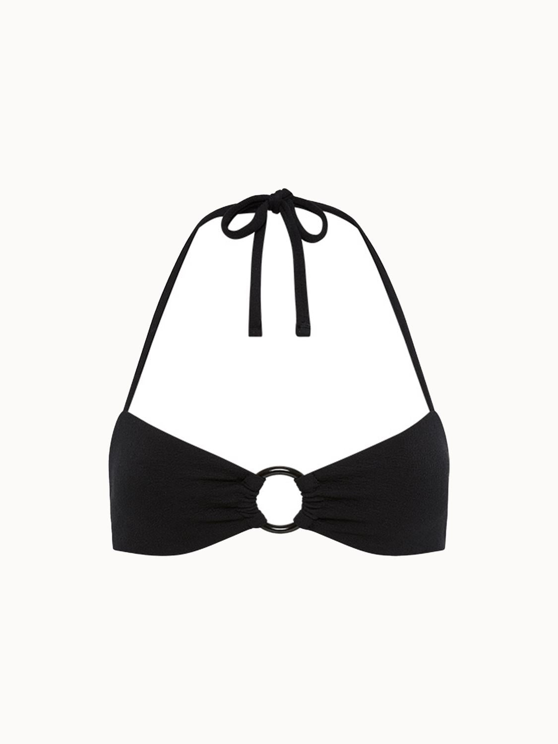 Ideal for relaxed poolside moments, this adorable swimsuit effortlessly transitions into the perfect sunset dinner outfit when paired with a flowing skirt. This bandeau style features a gathered detail across the bust, perfect for a chic poolside look. Made from 80% recycled nylon and 20% elastane, it promotes sustainability without compromising on comfort.