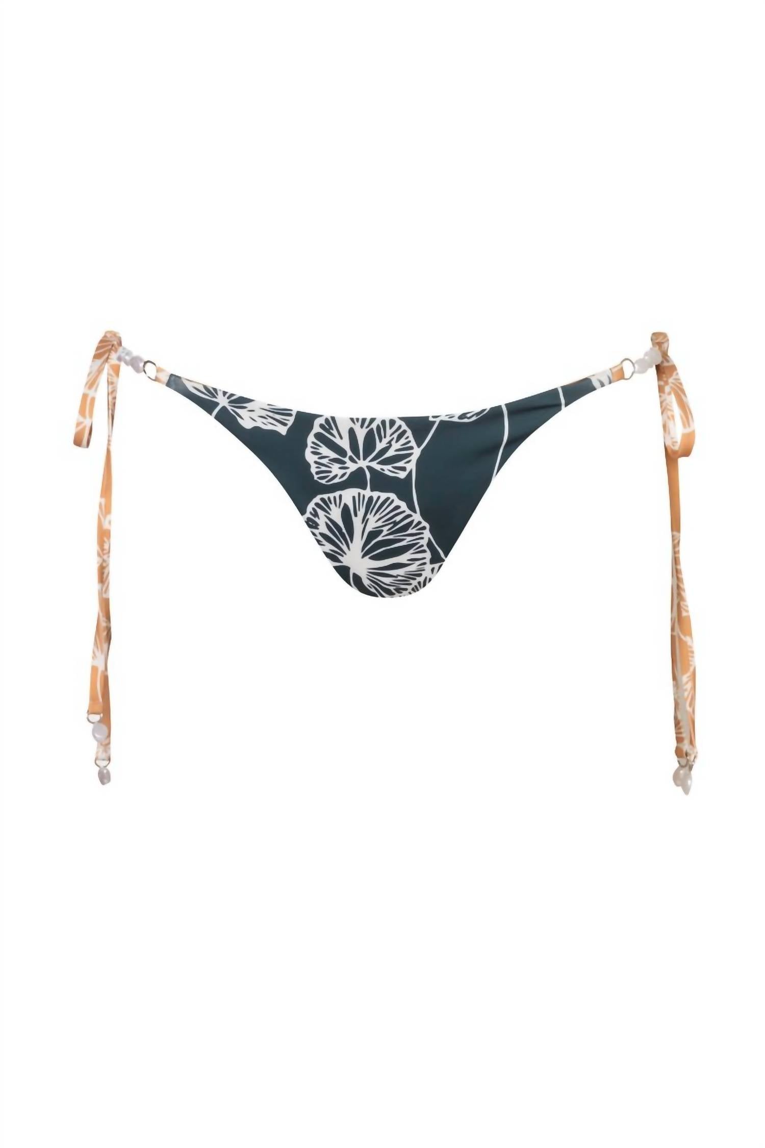 Ideal for relaxed poolside moments, this adorable swimsuit effortlessly transitions into the perfect sunset dinner outfit when paired with a flowing skirt. The Luna Bikini Bottom by Palmacea brings the vibrant spirit of Colombia to your swimwear collection. This cheeky bottom, in a striking teal, mustard, and white leaf print, features adjustable side ties and decorative rings on the front straps for added style. Crafted from an eco-friendly blend of 81% recycled polyester and 19% cotton, these bikini bottoms can be worn at the natural waist or high-waisted for versatile styling. Care is simple with machine wash instructions, making it perfect for summer beach days.