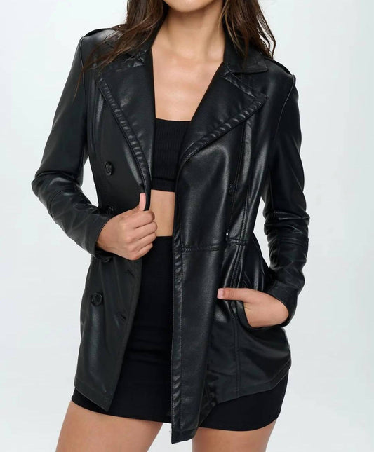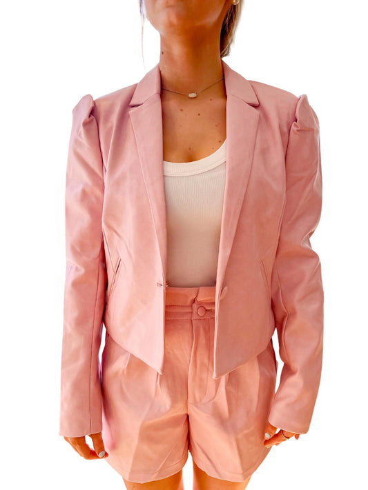 Love Tree - Faux Leather Lapel Neck Single Breasted Blazer