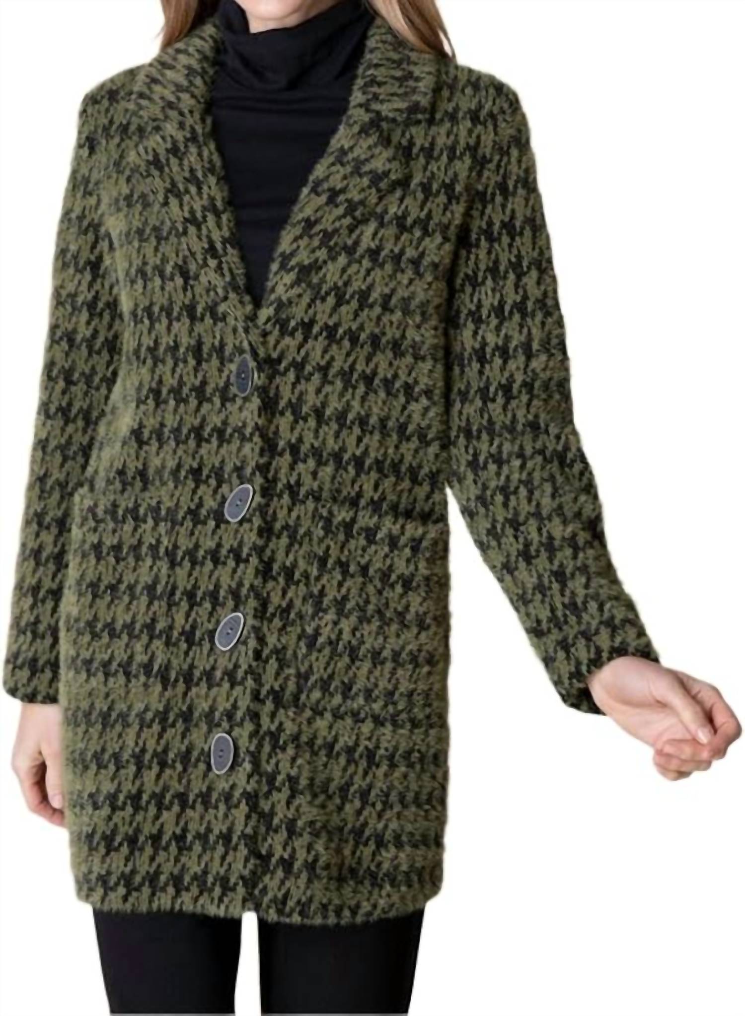 A blazer so versatile you can wear it to the office or pair it with jeans for a more casual look. Elevate your outerwear game with the Chenille Houndstooth Car Coat by Habitat, a sophisticated addition in a timeless green pattern. This women's coat features a classic collar and long sleeves, perfect for layering in cooler weather. The button closure adds a touch of elegance, while the convenient pockets offer practicality. Care: Dry clean and line dry to maintain its luxurious texture.