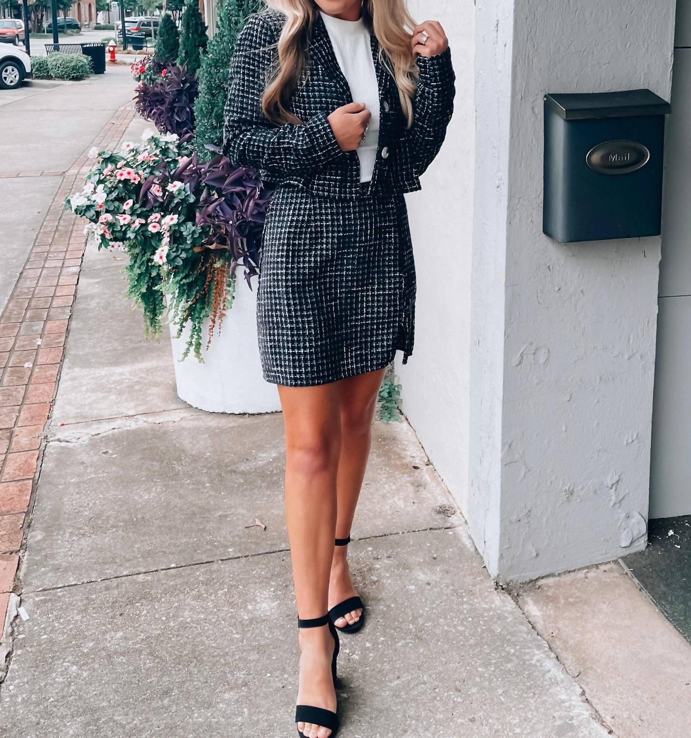 An elevated version of your favorite classic blazer. Chic choice in timeless sleek black blazer. Crafted from stylish tweed and features a classic collar and patterned design. Boasts long sleeves and a convenient button closure for a polished appearance. Perfect for anyone who values both fashionable flair and comfort.