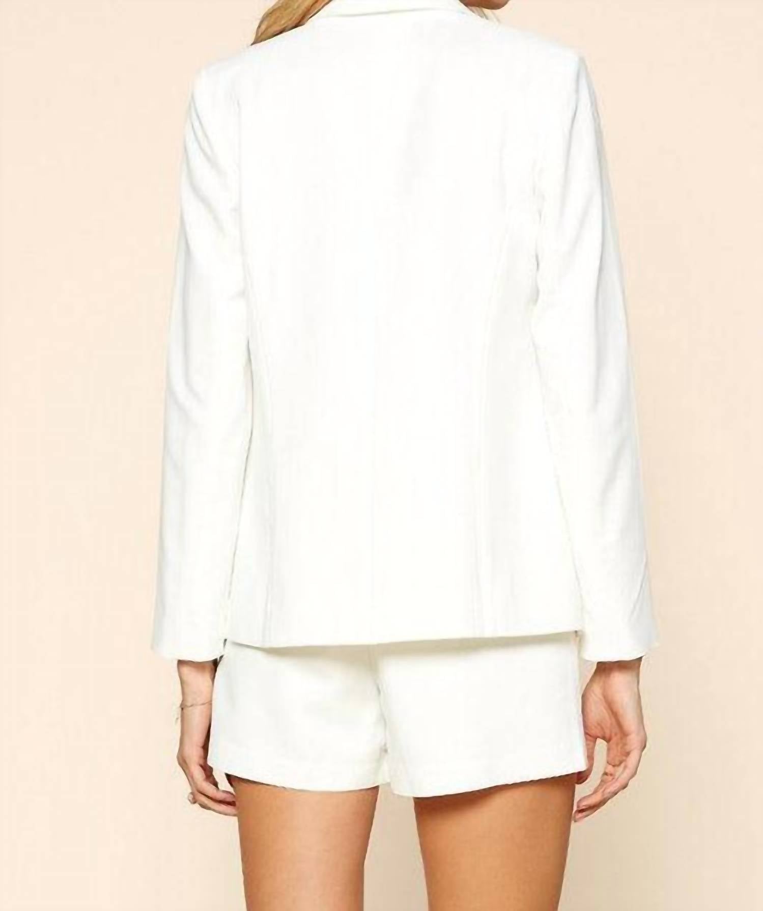 Tailored to perfection, this blazer will be your go-to jacket for years to come. Step into high fashion with the SKIES ARE BLUE Welt Pocket Blazer in a timeless white hue. This blazer, crafted from polyester, features long sleeves and is highlighted by notched lapels and welted flap pockets for an exquisite touch. The pull-on closure offers effortless sophistication for a polished, sleek look. Perfect for elevating any ensemble, this piece brings a tailored essence to your wardrobe with ease.