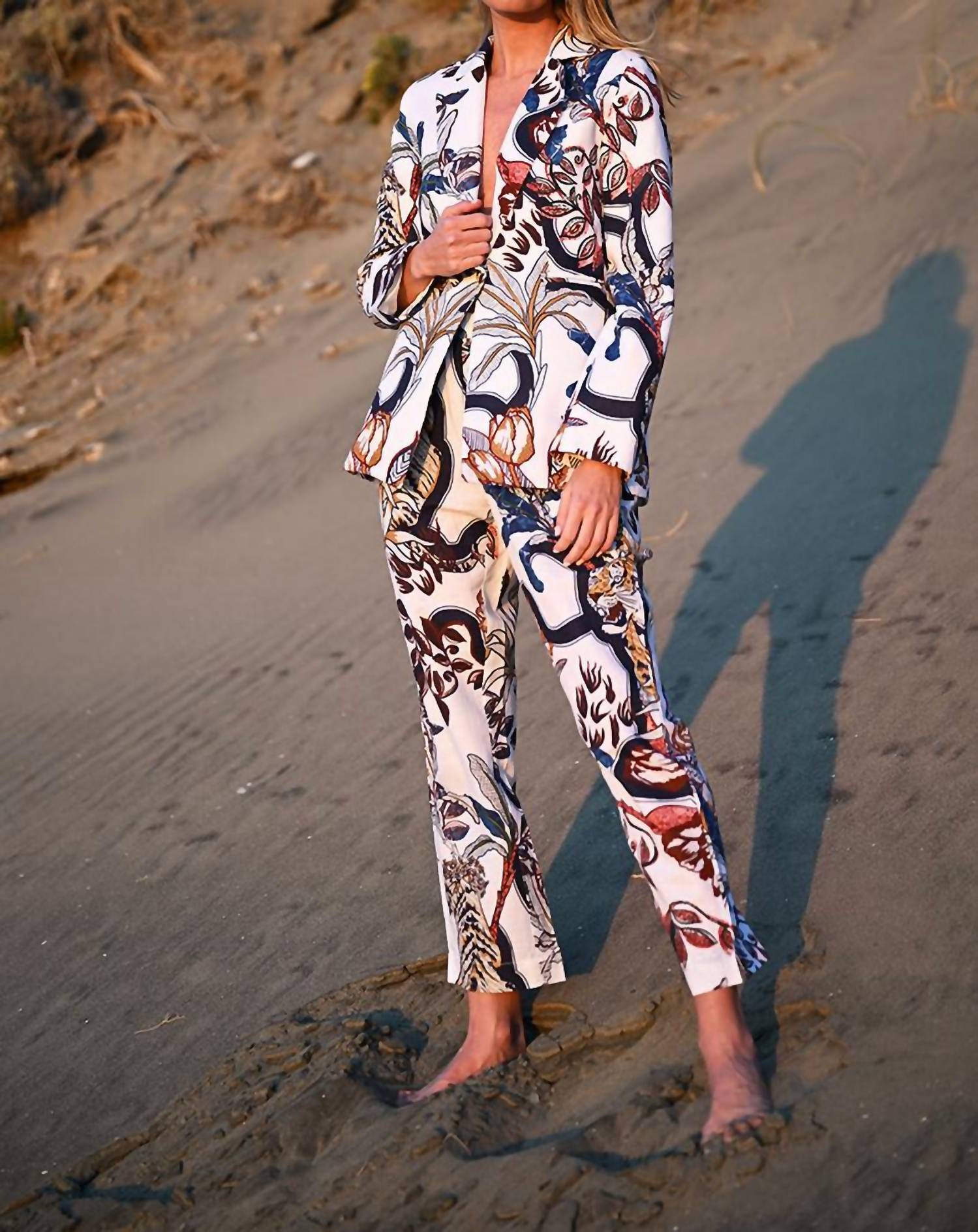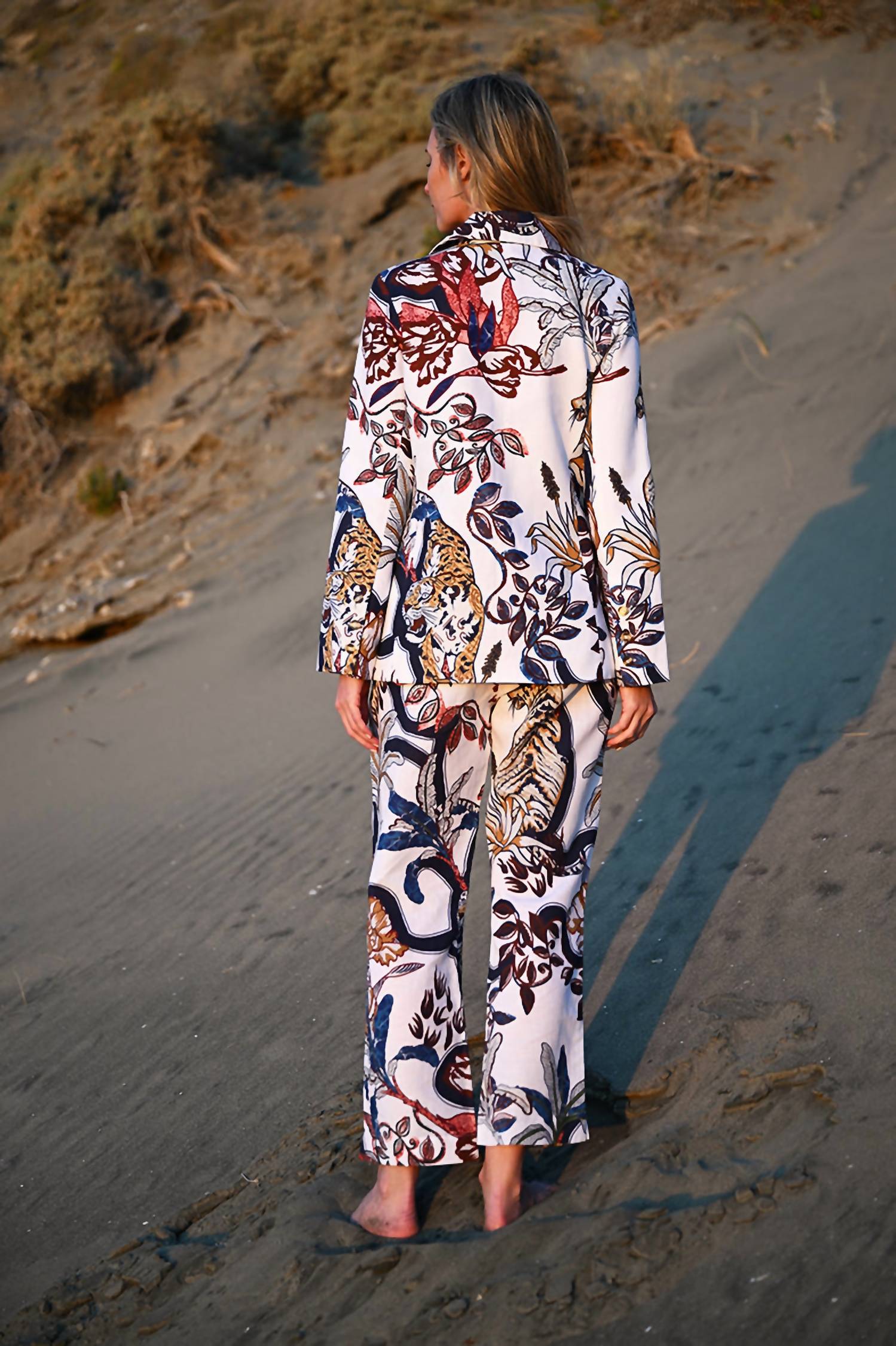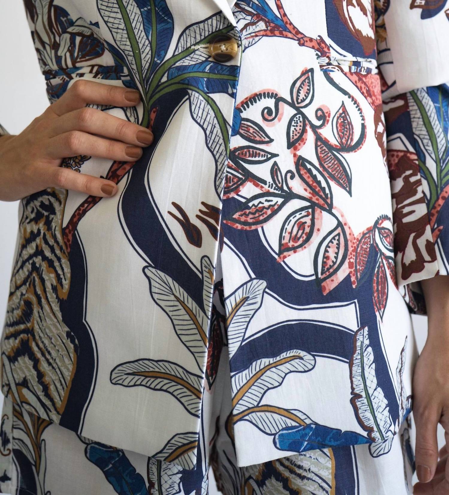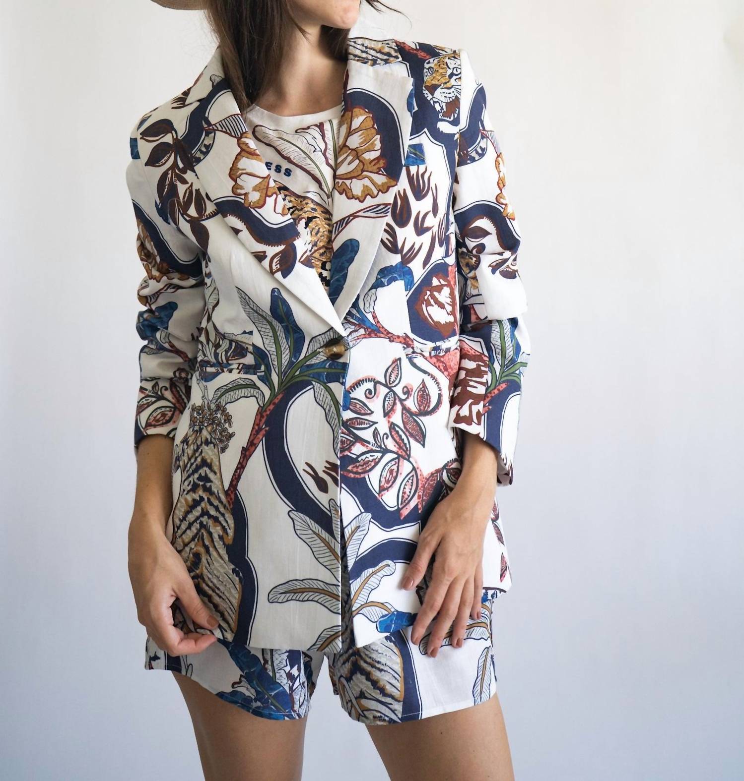 Tailored to perfection, this blazer will be your go-to jacket for years to come. Discover the Color Tiger Blazer by Las Sureñas, a perfect blend of style and sophistication. This long-sleeve blazer is crafted from a 55% linen and 45% cotton blend, featuring a deep V-neckline and a chic straight hem. Designed for versatility, it can be worn open or closed with a classic button closure. Care for this patterned piece is simple with machine wash and tumble dry instructions.