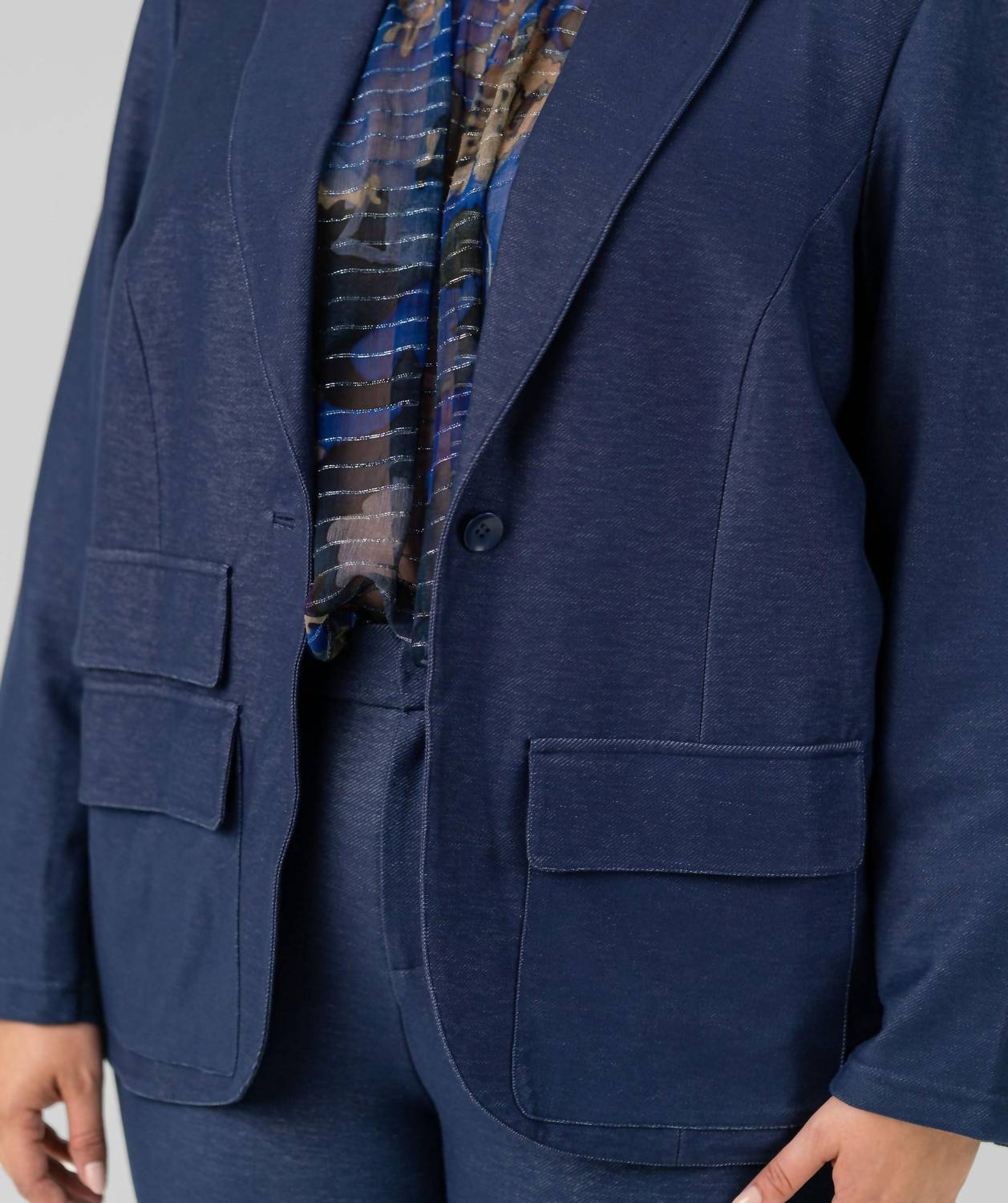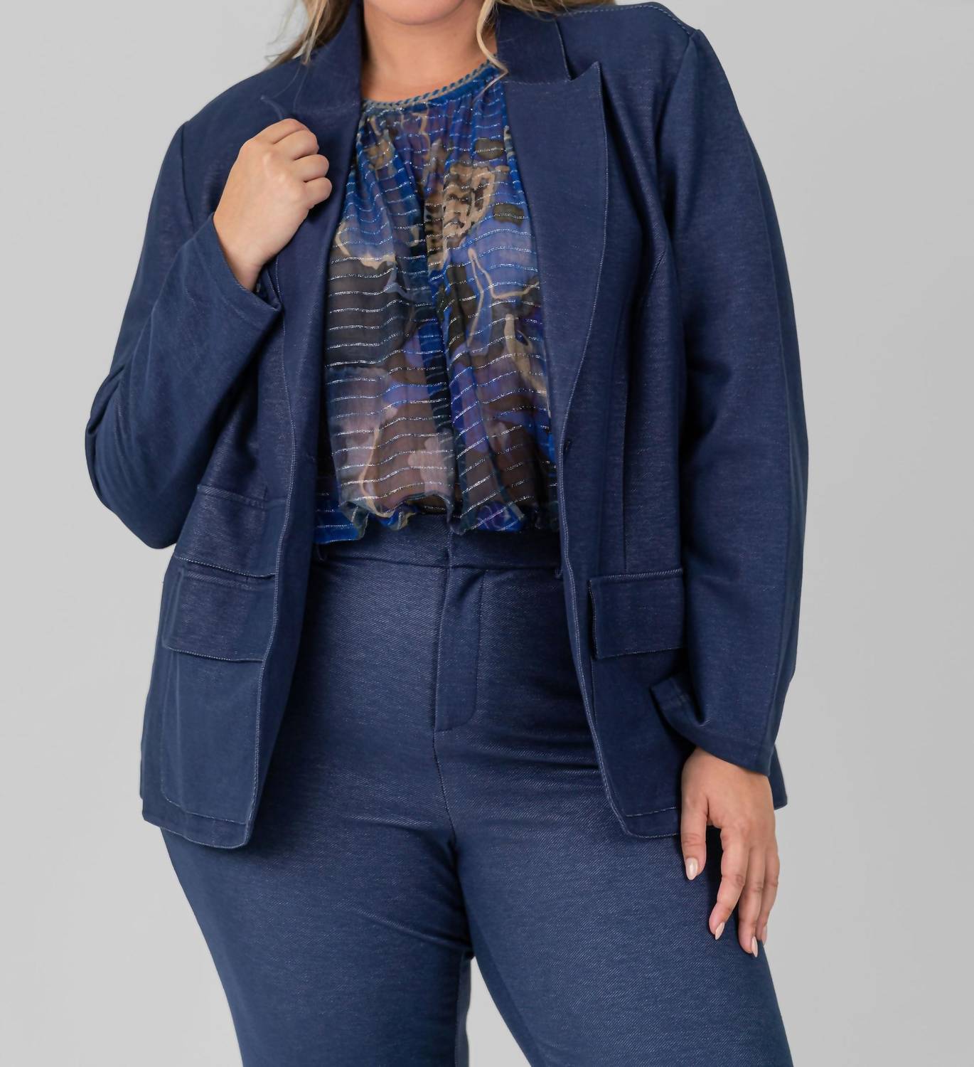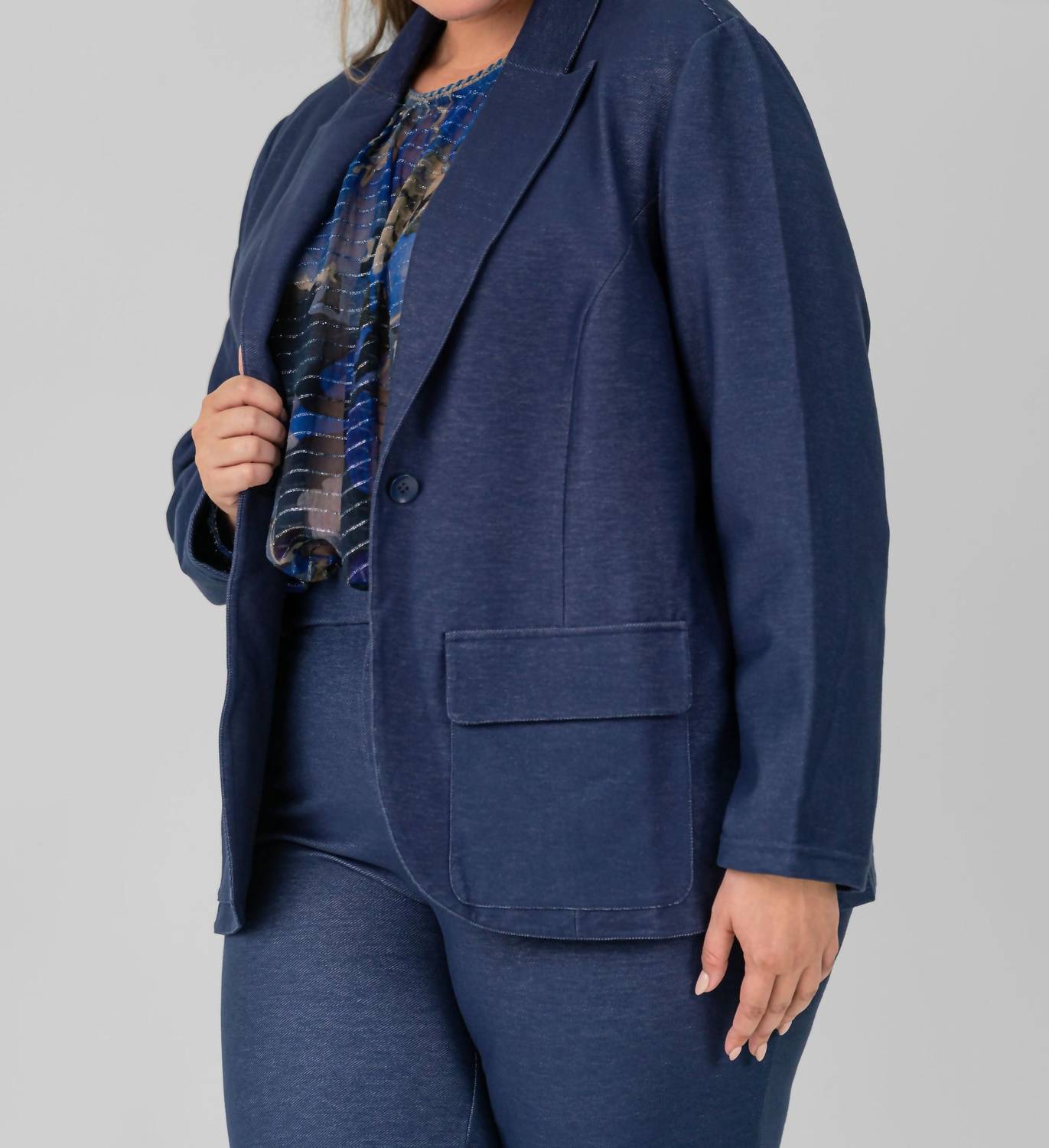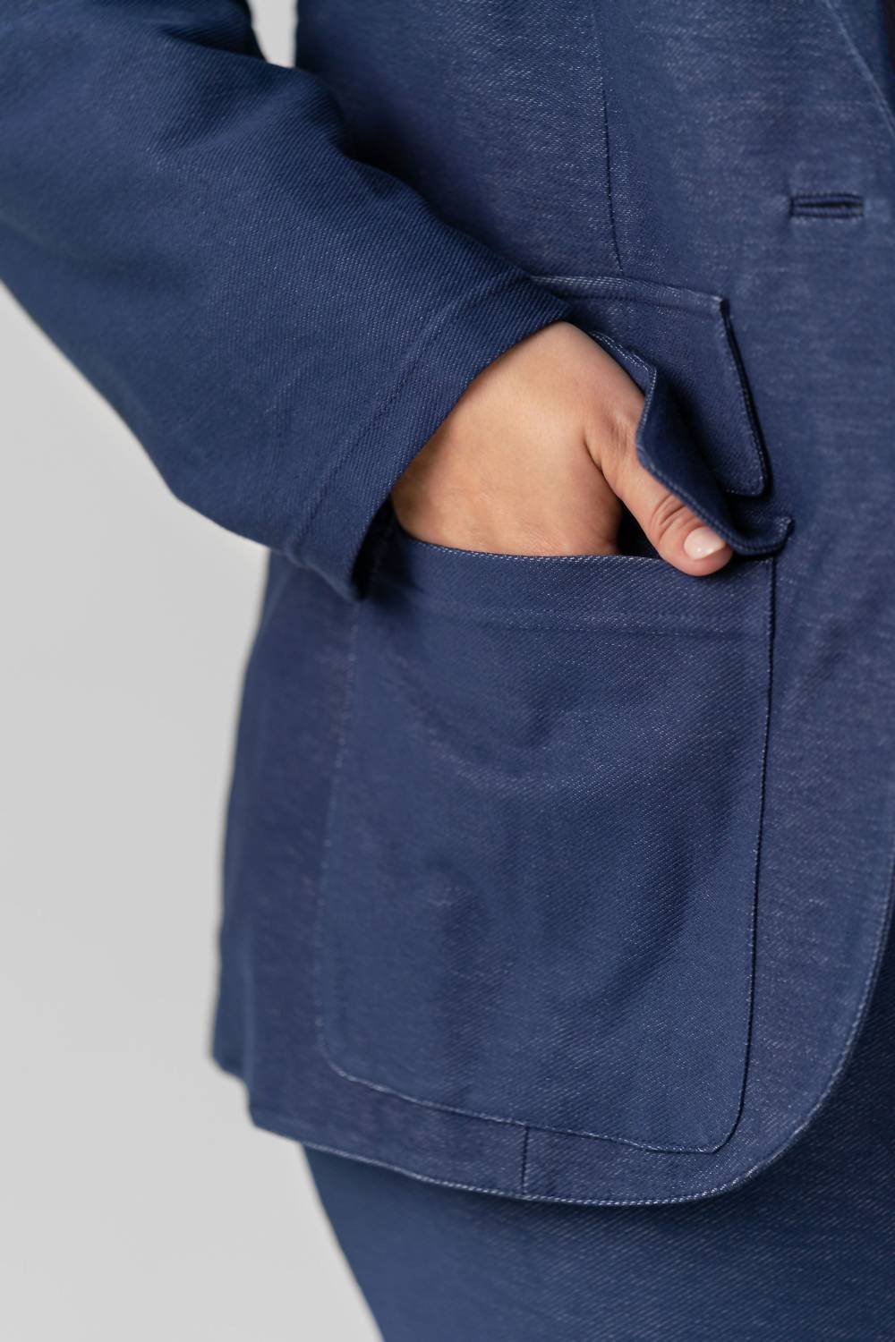 Experience the blend of comfort and sophistication with the Vesta Jacket by Capsule 121, crafted in a versatile medium blue wash. This women's long-sleeve blazer, made from a cotton blend, offers a structured yet relaxed fit, perfect for a dinner party or a cozy fall evening. Featuring a classic collar and button closure, it pairs effortlessly with a variety of ensembles. Care is easy; simply machine wash and lay flat to dry.