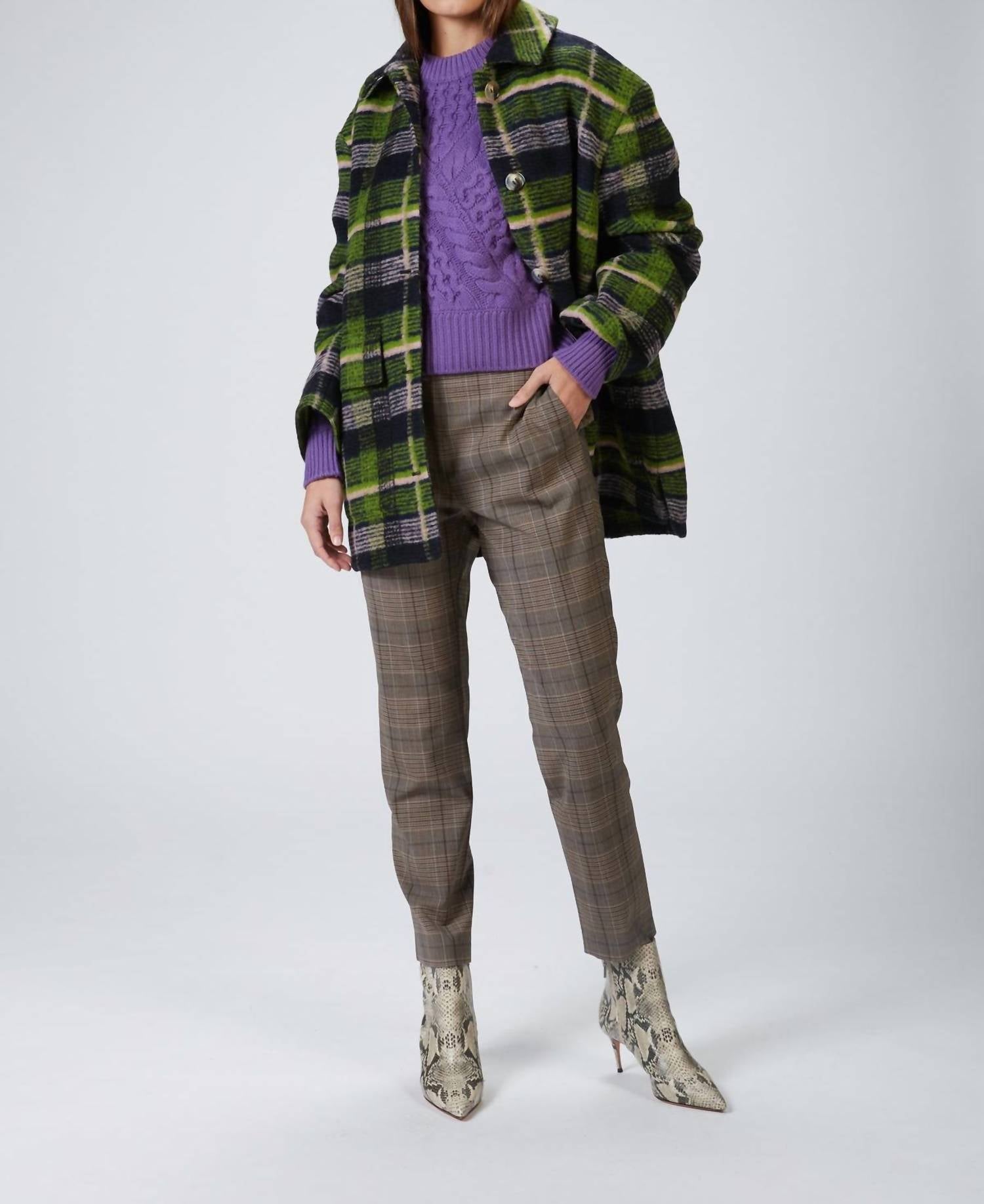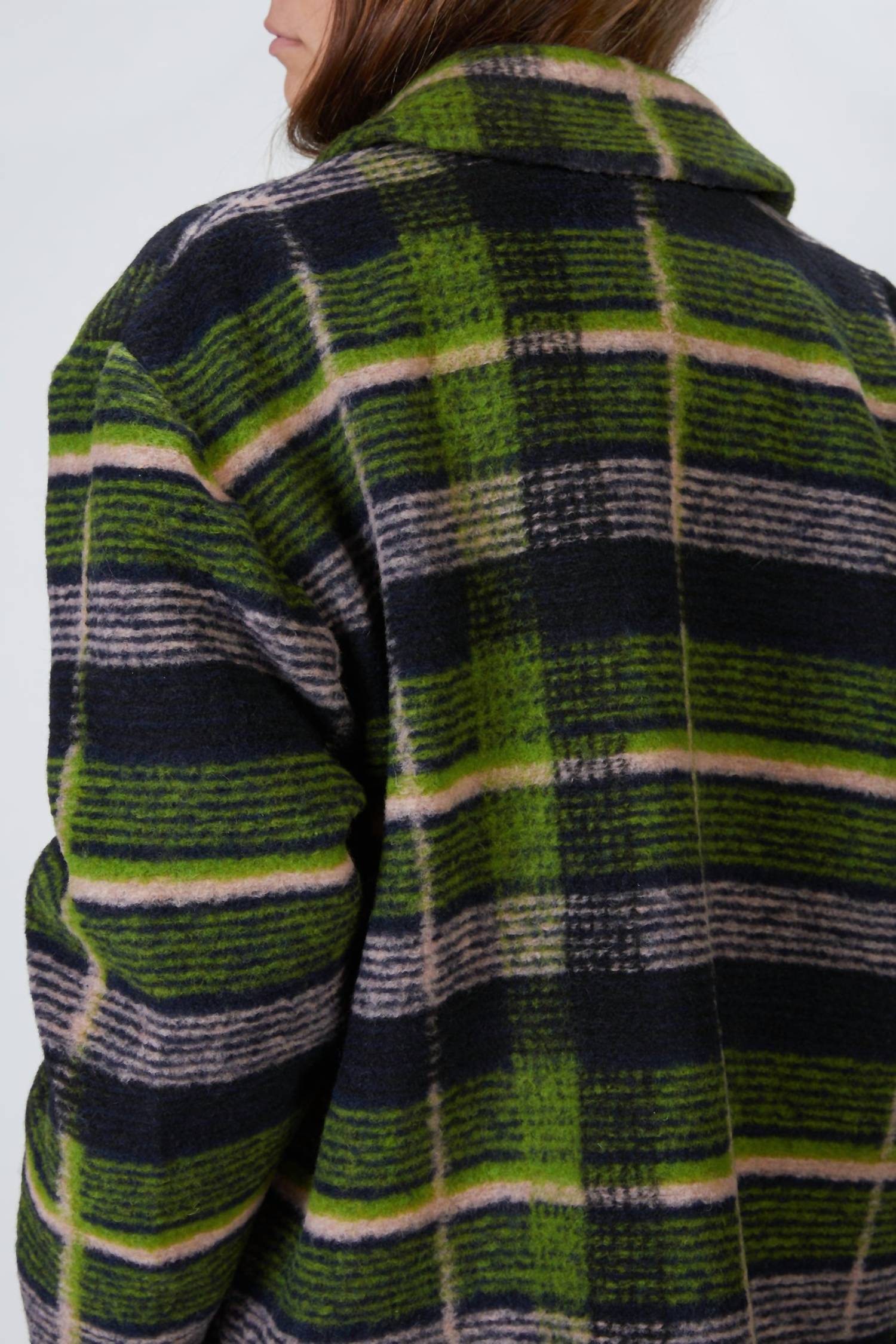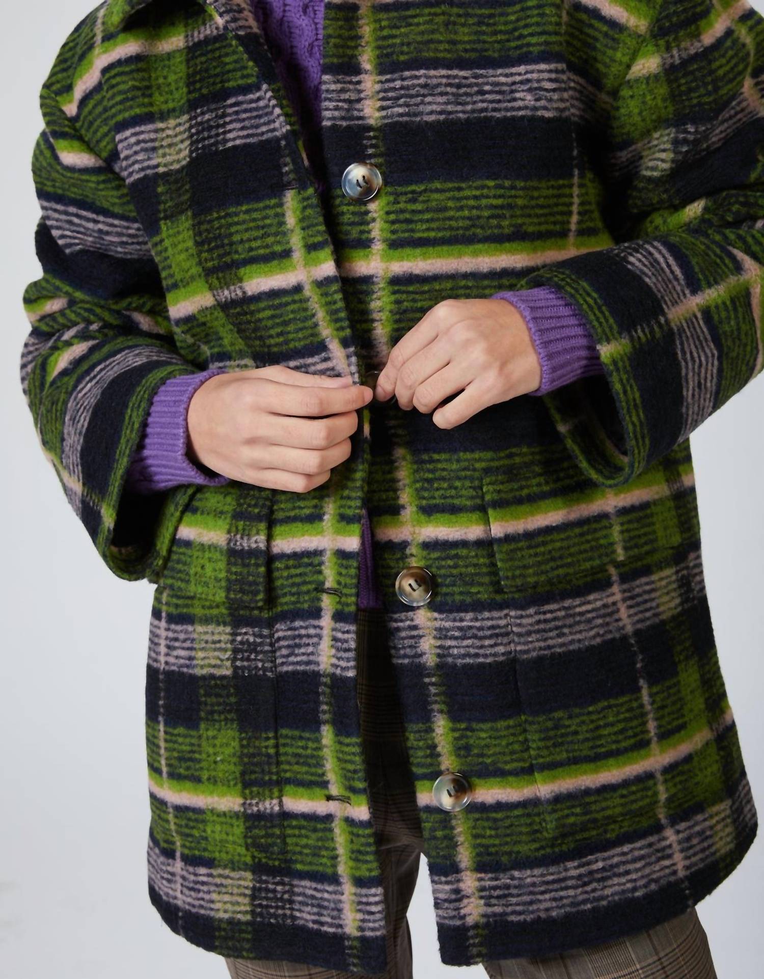 Cut in a relaxed silhouette, this 'Lottie' jacket is a modern-chic way to layer looks in-between seasons. Crafted from a warming wool blend in a dark green and navy plaid print, it is cut just above the thigh and features patch pockets with flaps. Fabrication: 78% Wool, 22% PolyesterCare: Dry cleanStandard Clothing SizingEllise is wearing size Small