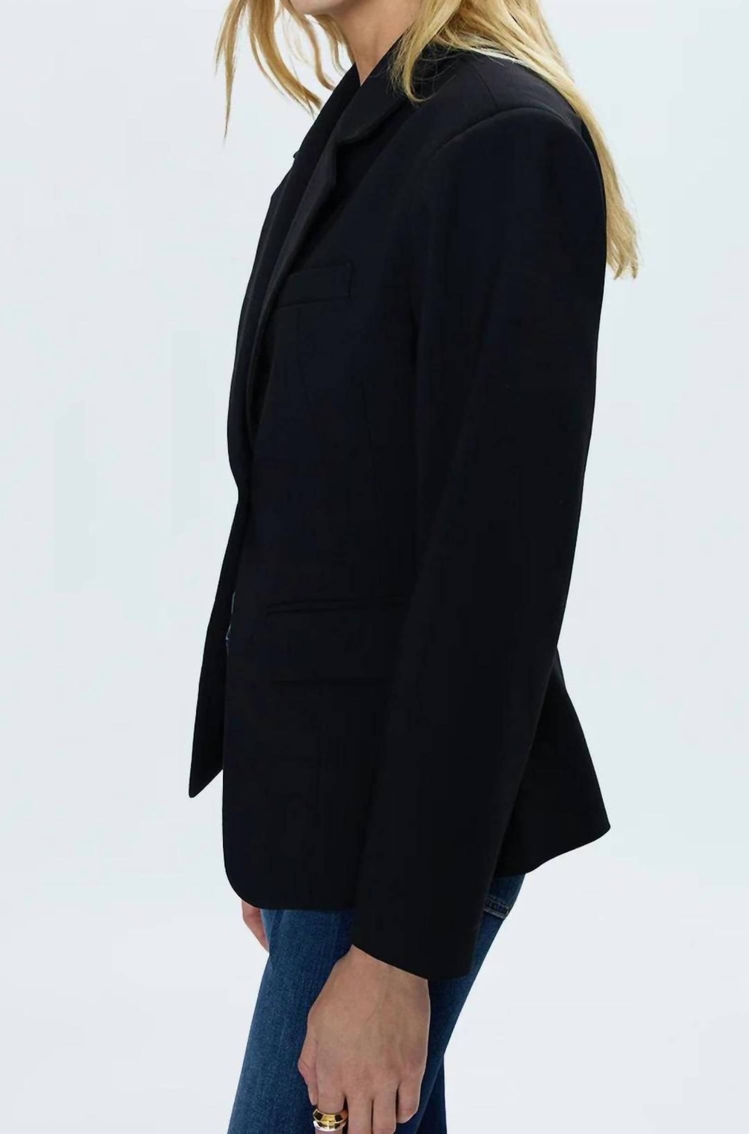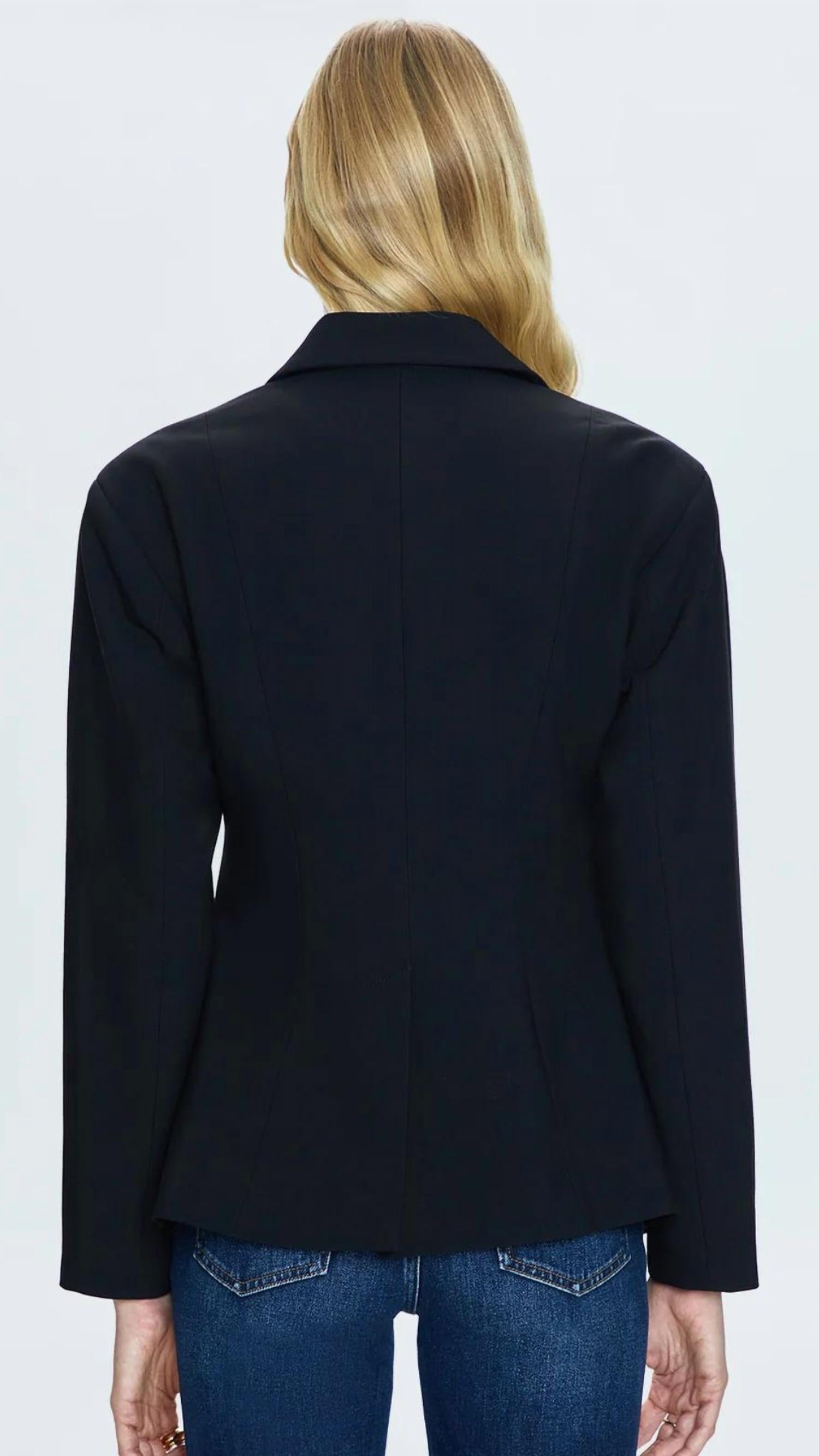 A blazer so versatile you can wear it to the office or pair it with jeans for a more casual look. Elevate your workwear wardrobe with the Stassi Blazer from PISTOLA, a long sleeve essential in a chic black hue. Crafted from a blend of 76% Polyester, 19% Rayon, and 5% Spandex, this blazer boasts a solid pattern with a slightly cropped fit and cinched waist for feminine flair. Featuring a collar and button closure, it's thoughtfully lined with pockets for added functionality. Care for this modern piece by following the dry clean instructions to maintain its polished look.