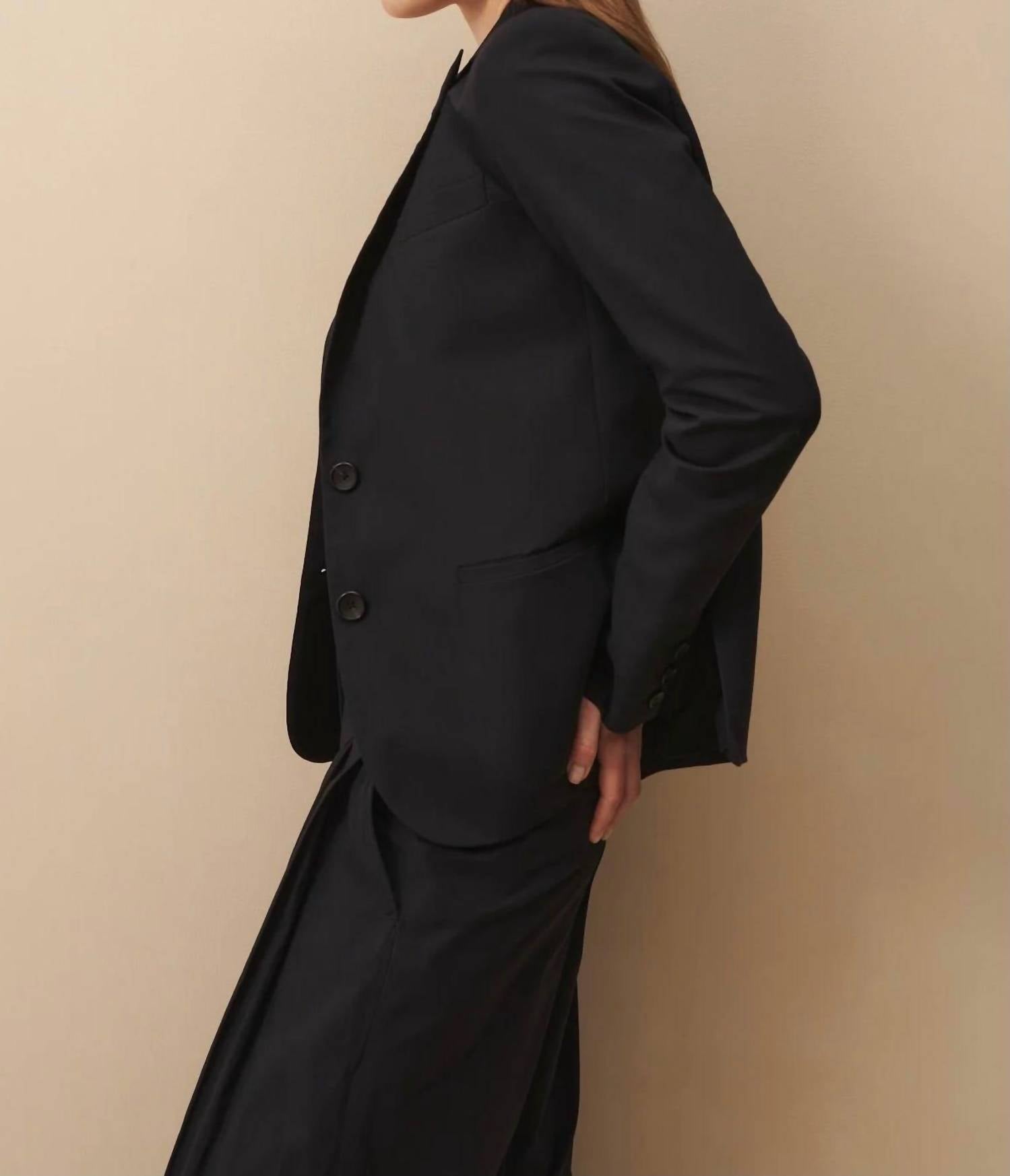 An elevated version of your favorite classic blazer. Elevate your spring wardrobe with the Boyfriend With Zipper Blazer by TWP, offering a relaxed silhouette in a sophisticated midnight hue. This long sleeve blazer is crafted from lightweight, breathable stretch cotton poplin, featuring innovative hidden zippers at the sleeves for a modern touch. Originating from the celebrated Boyfriend Blazer collection, it offers a button closure, peaked lapel, and stylish triple faux horn button cuffs. Ideal for workwear or engagement occasions, this blazer exudes effortless elegance.