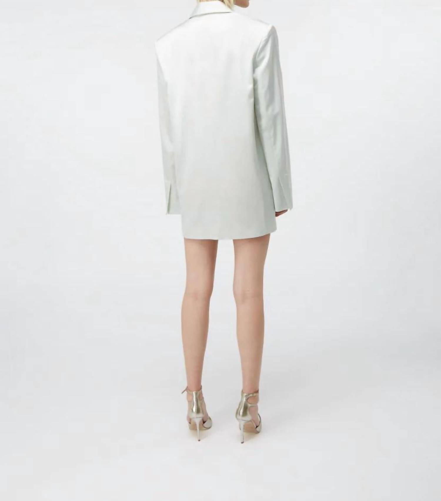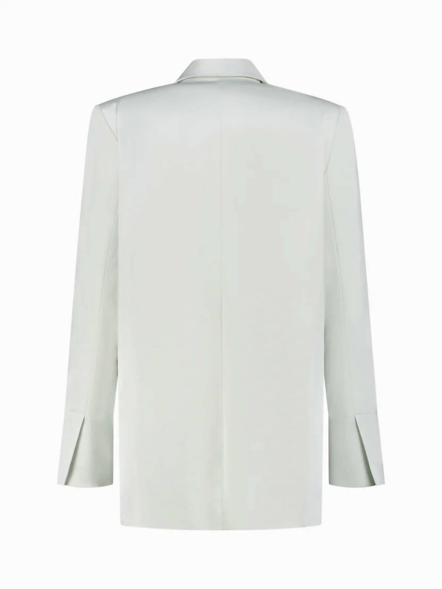 The MANDALAY blazer is made from our textured stretch satin, complete with three covered button closures. The shoulder pads extend slightly further to accentuate the oversized fit, making it the perfect piece for day-to-night wear. 73% Viscose, 24% Wool, 3% Elastane. Pockets inside. Dry clean only. Cathy is 176cm (5' 9") and wears size 36. Designed in Amsterdam. Made in Portugal.