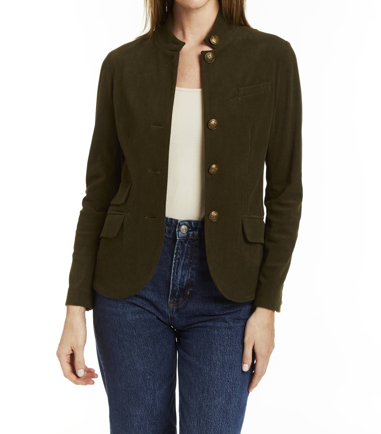 An elevated version of your favorite classic blazer. Introducing the Jordan Jacket by DREW, a textured blazer in a sophisticated olive hue, perfect for elevating your wardrobe. This stylish piece features a classic collar and a long sleeve design. Closure: Button closure. Ideal for a chic, polished look, this jacket is a must-have for any fashion-forward woman.