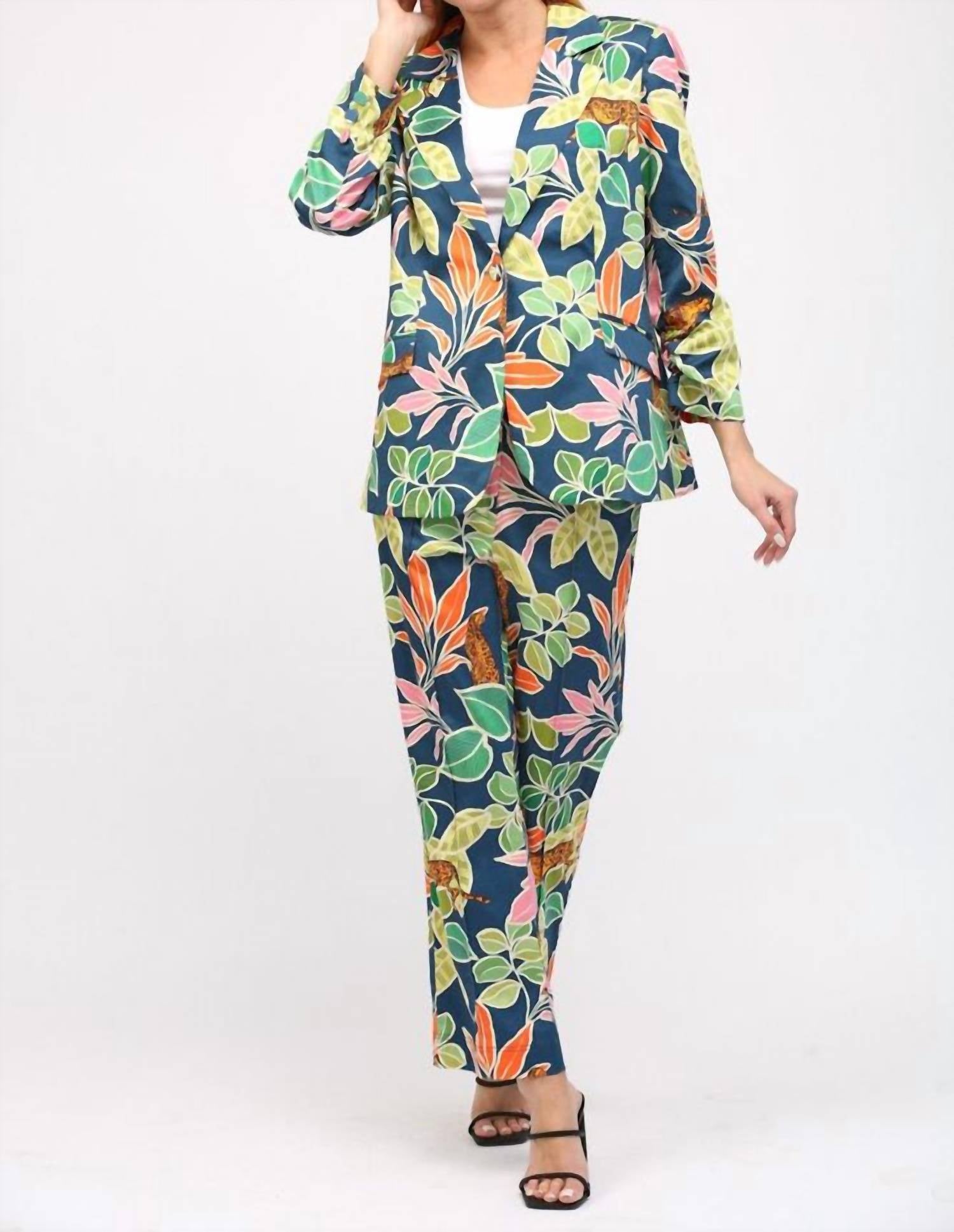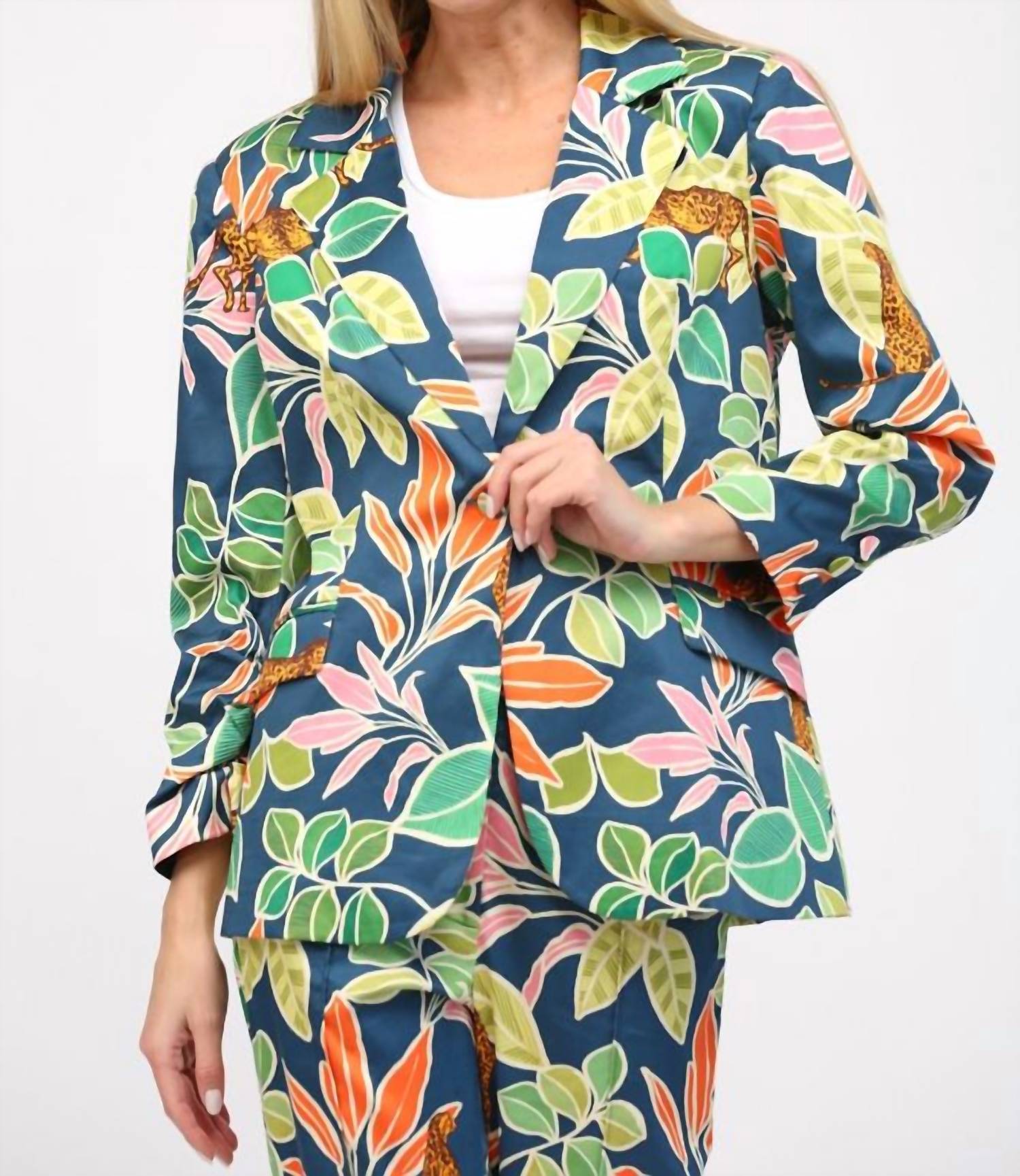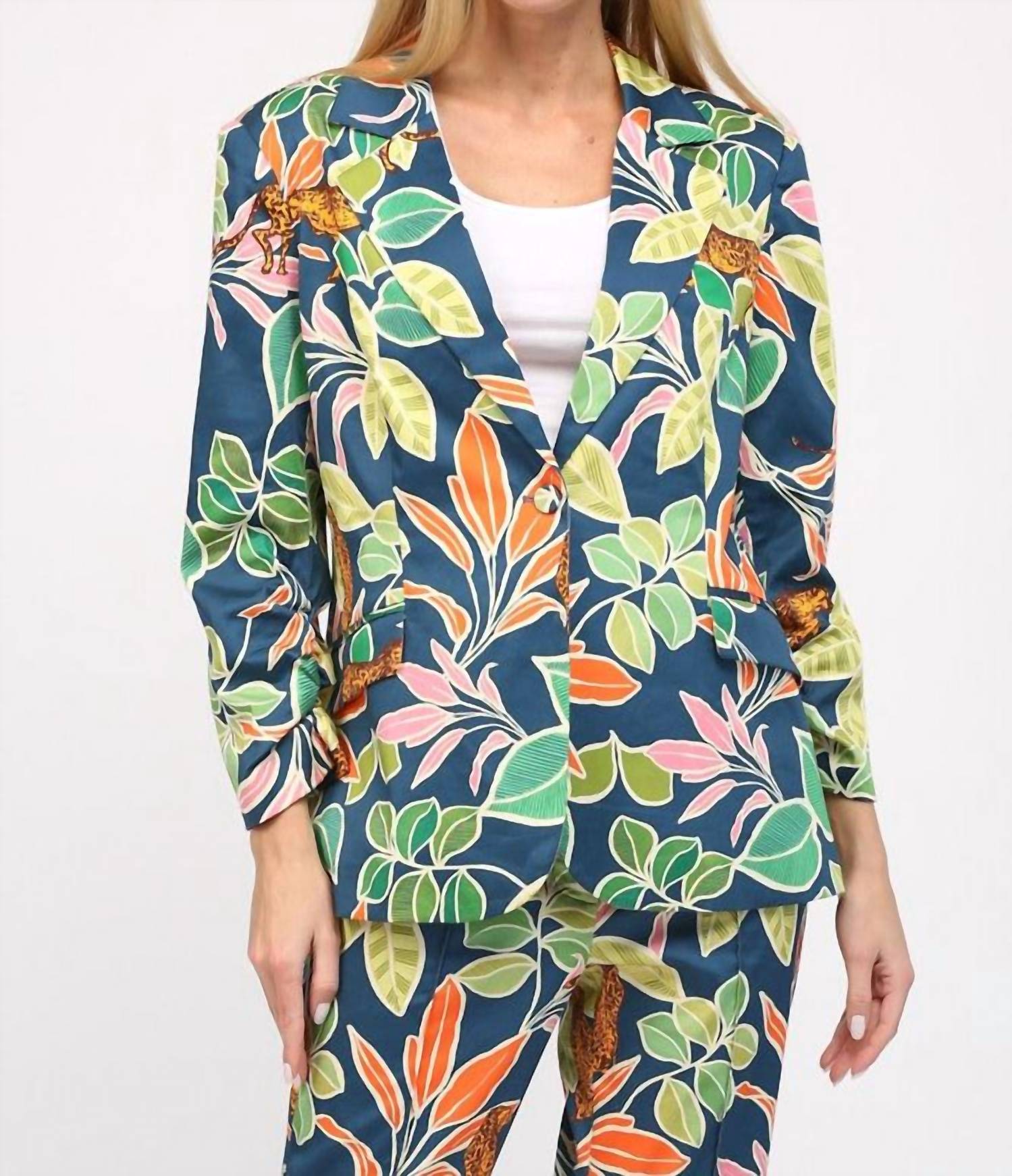A blazer so versatile you can wear it to the office or pair it with jeans for a more casual look. Embrace vibrant style with the Tropical Print Satin Blazer by Fate by LFD, a standout piece in a colorful floral pattern. This women's blazer features a sleek collar that adds a touch of sophistication to any outfit. Crafted from satin, it's designed for those who dare to stand out. Ideal for layering over your favorite basics or pairing with coordinating pieces for a bold look.