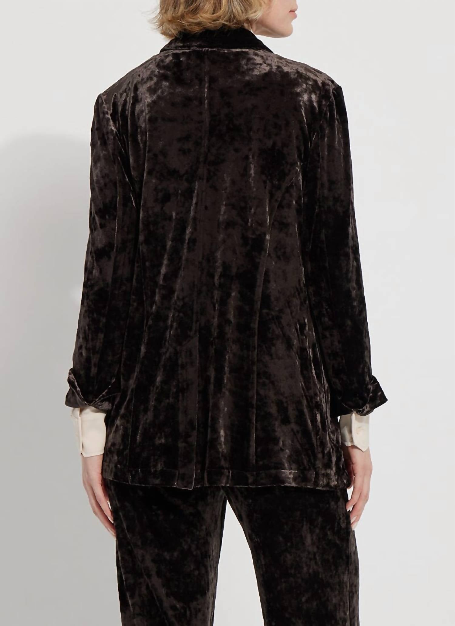 Crafted from Crushed Velvet with 95% Polyester and 5% Spandex, this blazer showcases a deconstructed design with long sleeves and a sophisticated collar. The button front closure, patch pockets, and back vent add functionality and style. Designed to be unlined, it offers easy care with machine washability.