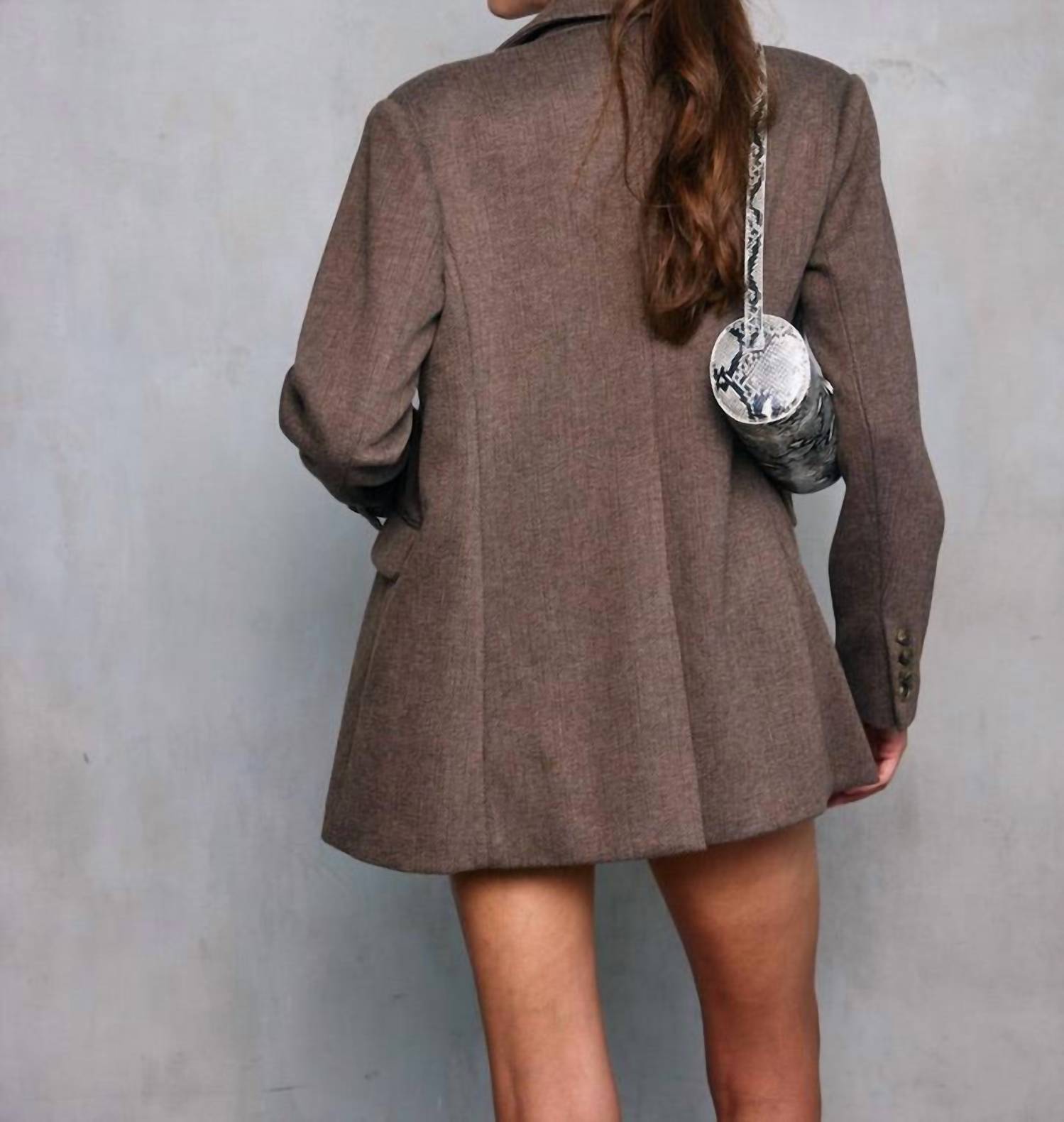 An elevated version of your favorite classic blazer. Introducing the Women's Belmont Blazer by Line and Dot, a chic addition perfect for your boho-inspired spring wardrobe. This brown blazer features a V-neckline and long sleeves, making it an ideal choice for vacation occasions. Crafted with a solid pattern and a convenient pull-on closure, it offers style and ease of wear. Please note that specific care instructions are not provided, and it does not include pockets or lining for a streamlined look.
