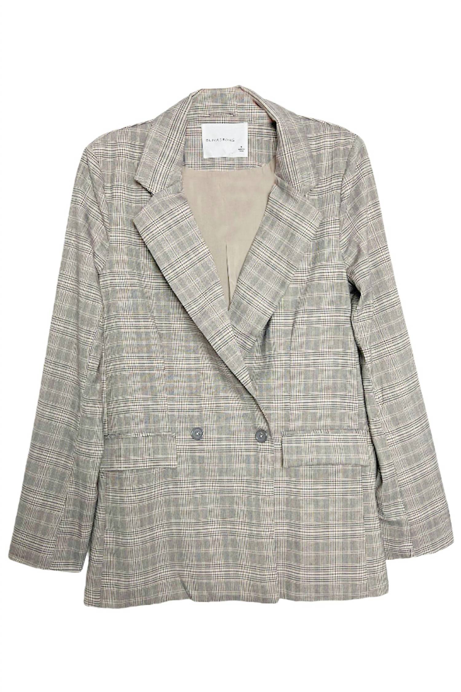 Tailored to perfection, this blazer will be your go-to jacket for years to come. Embrace preppy style with the OLIVACEOUS Gray Plaid Blazer, perfect for fall excursions or your Thanksgiving gathering. This relaxed blazer features long sleeves with a three-button detail and a single button closure. Crafted from 64% Tencel and 34% Rayon, the piece is thoughtfully lined and designed with practical pockets. Care for your blazer by machine washing it and laying it flat to dry.