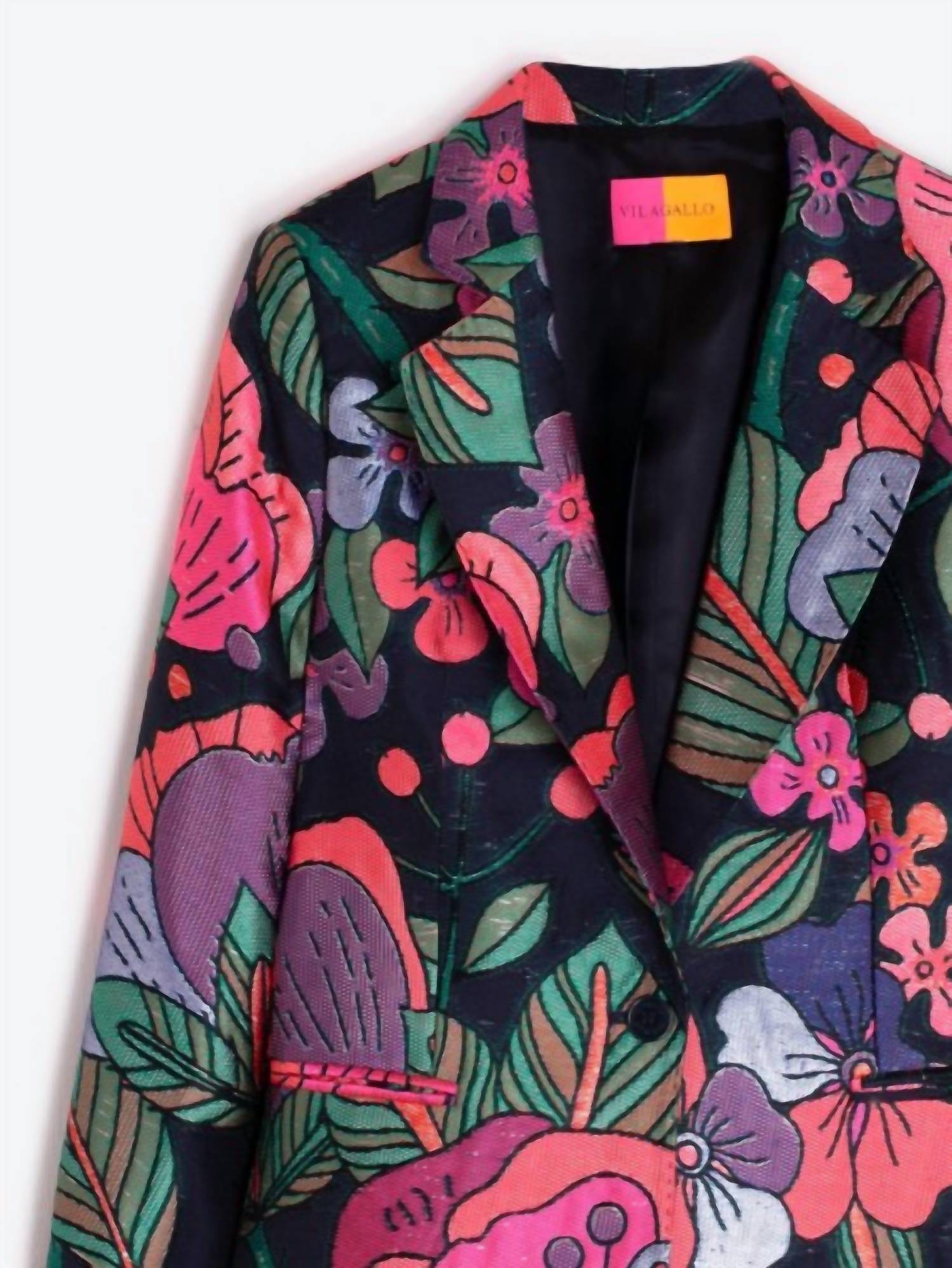 Blazer with colourful flower jacquard. The model is 178 cm tall and wears a size 38.