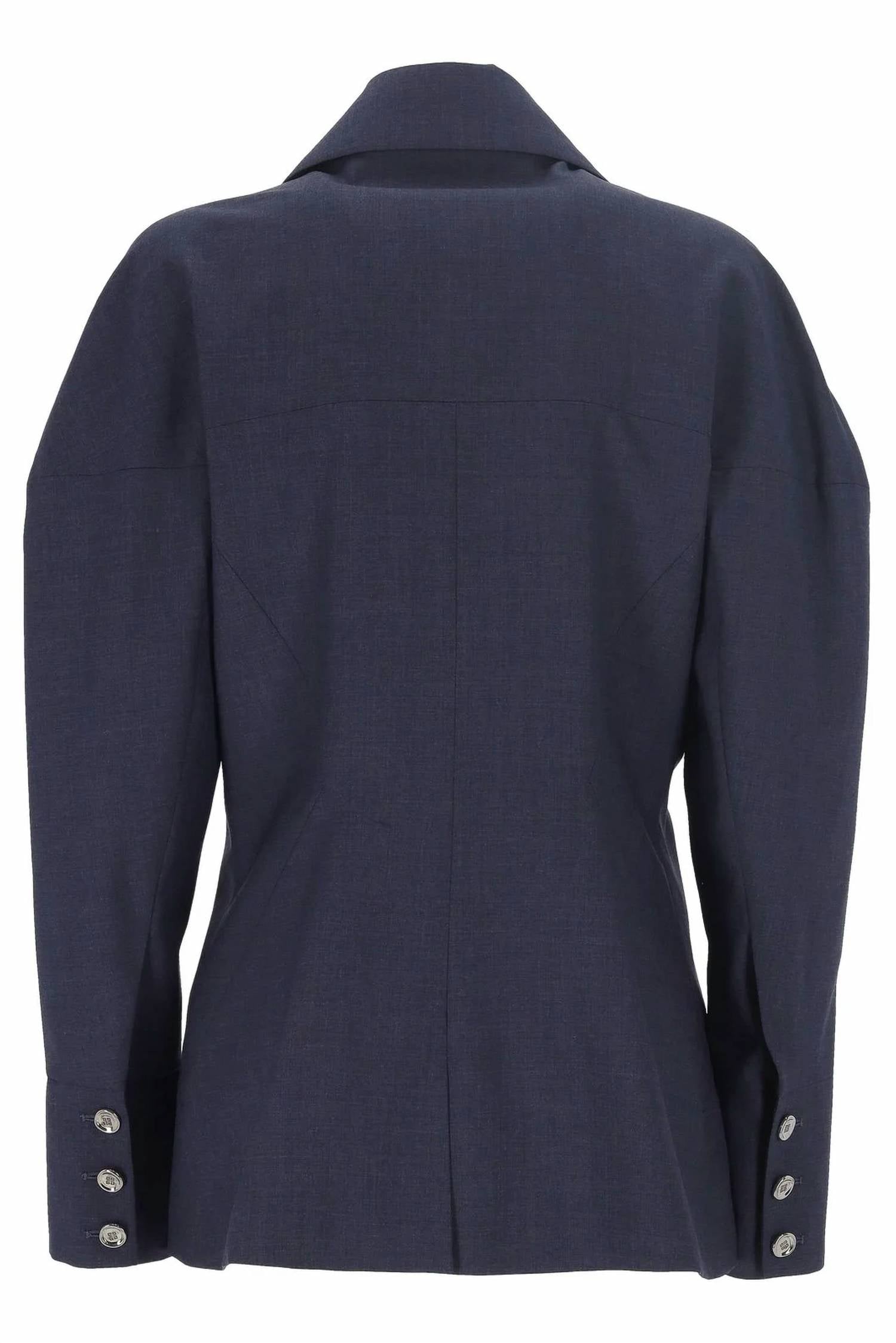 Tailored to perfection, this blazer will be your go-to jacket for years to come. Unveil timeless elegance with the Givenchy Women's Button-up Cuffed Jacket in a refined denim blue hue. This blazer, crafted from 100% virgin wool, features long sleeves and a tailored slim fit, complemented by notched lapels. Its double-breasted button closure adds sophistication, while two side welt pockets offer practical elegance. Made in Italy, this piece requires care according to the label.