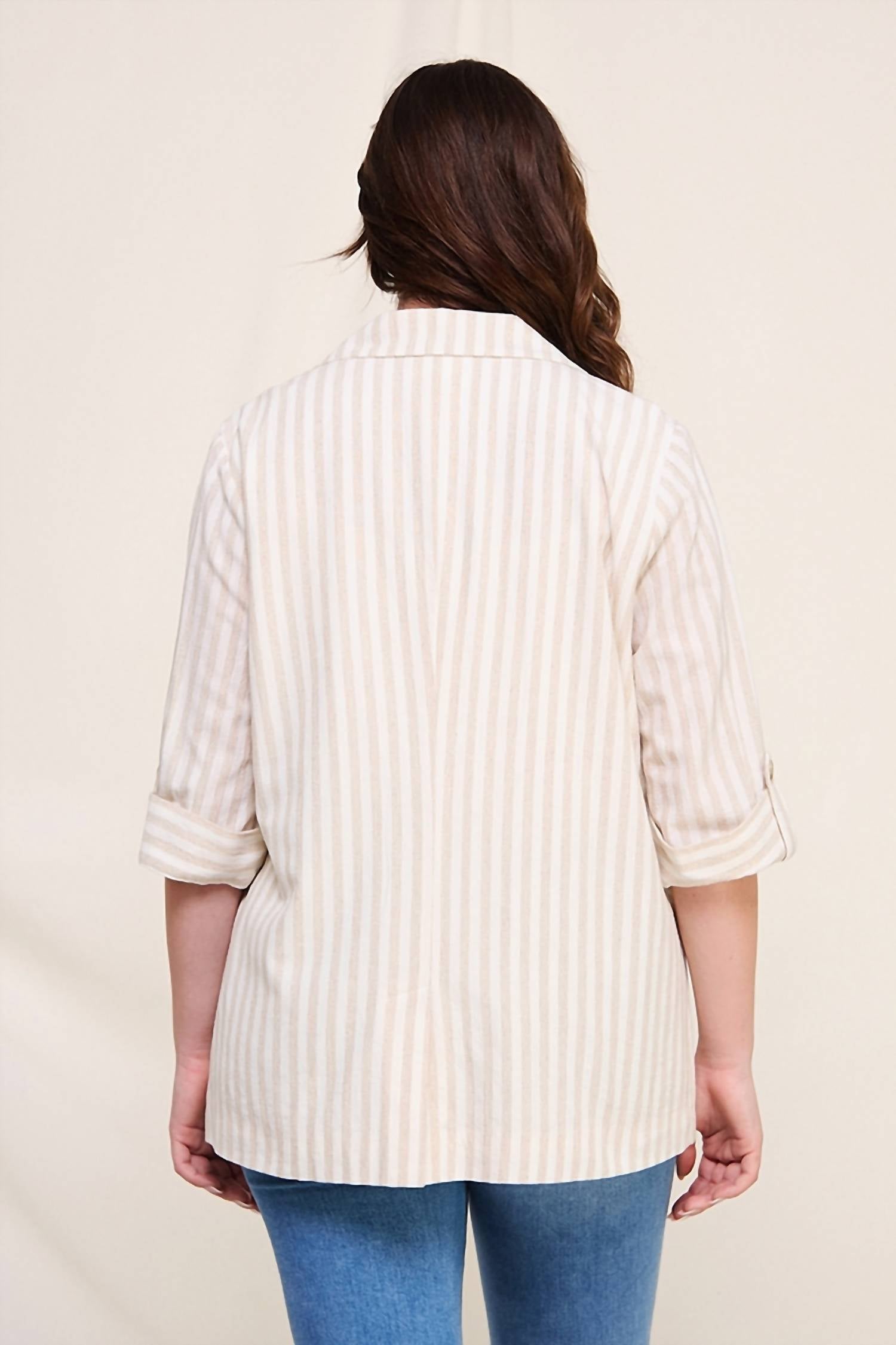 Allie Rose - Striped 3/4 Roll Tab Sleeve Jacket