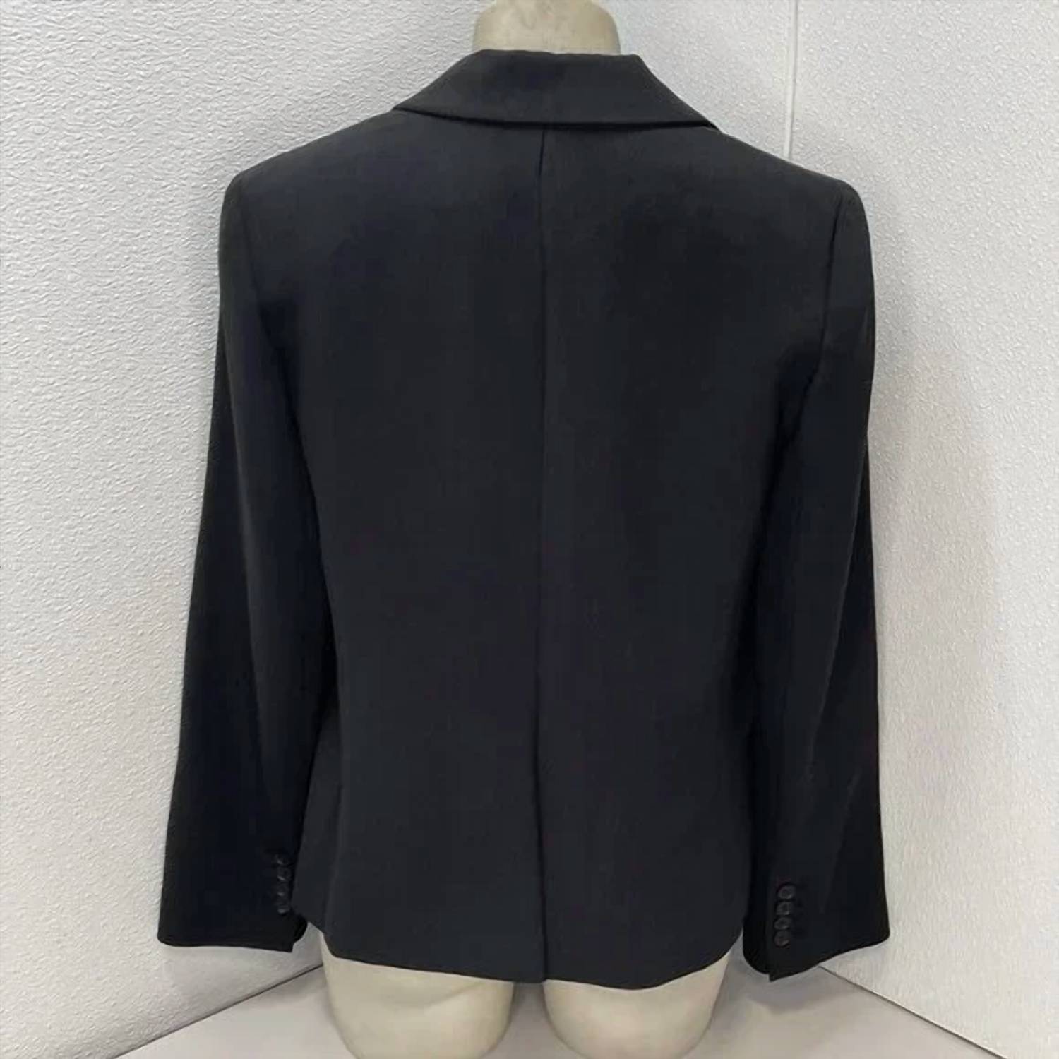An elevated version of your favorite classic blazer. Elevate your wardrobe with the Women's Schoolboy Textured Crepe Blazer by Argent, tailored for a refined look. This long-sleeve blazer is expertly crafted from a blend of 63% polyester, 33% viscose, and 4% elastane, delivering both structure and comfort. Made in Morocco, it features a classic button closure and is lined with a 95% polyester, 5% elastane combination. This chic black blazer demands dry cleaning and is versatile for pairing with various pieces, perfect for the office or evening events.