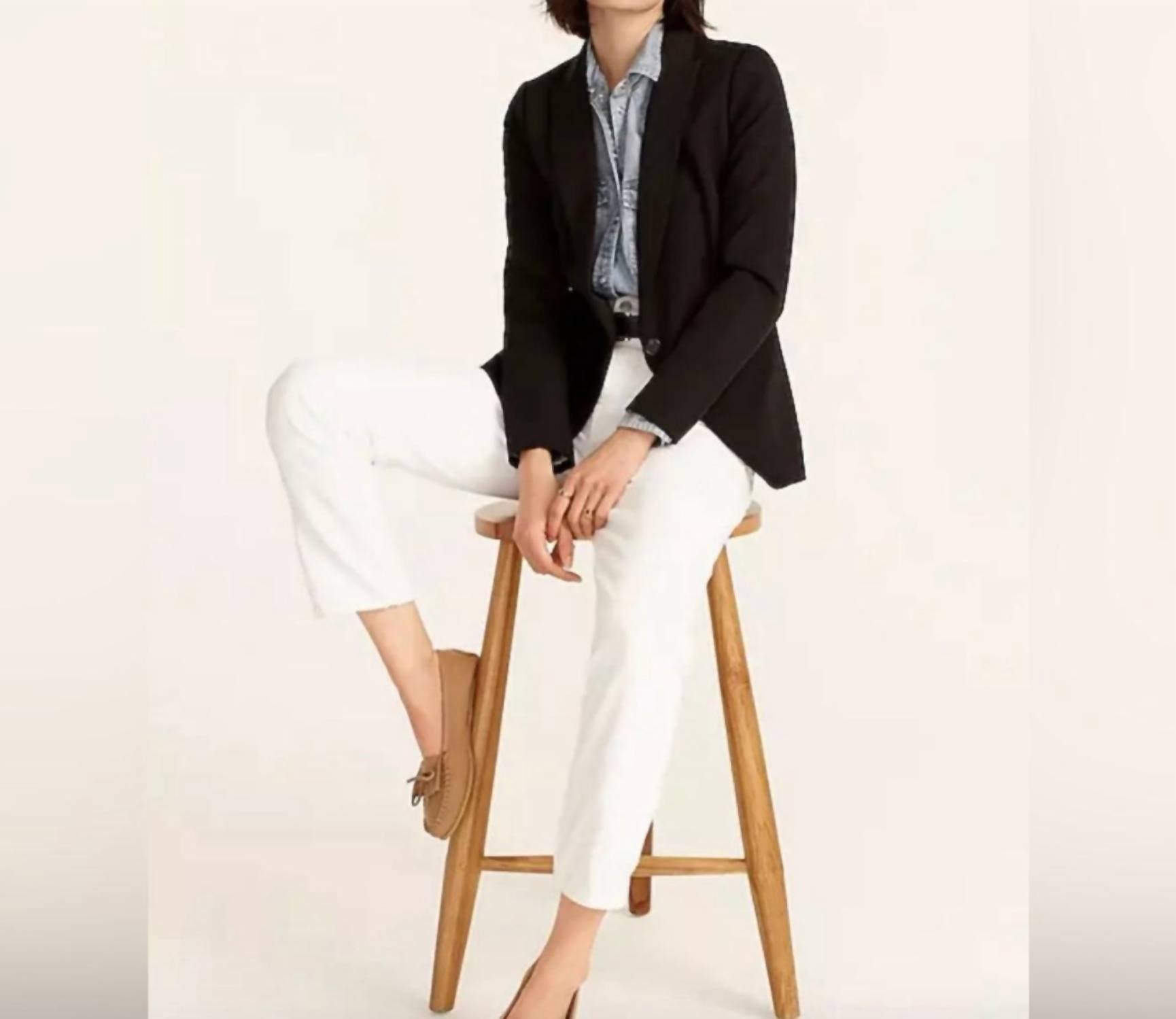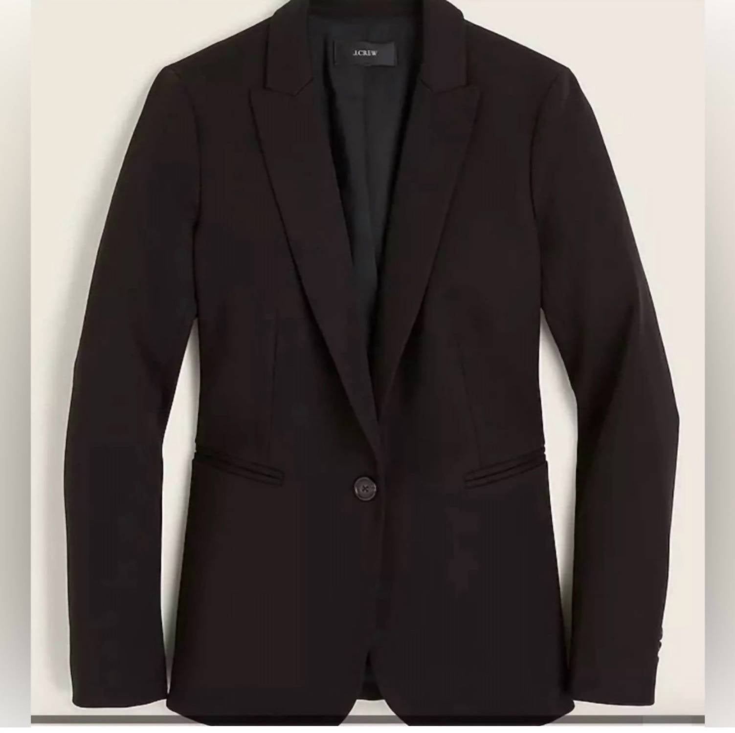 Tailored to perfection, this blazer will be your go-to jacket for years to come. Introducing the J.Crew Parke Blazer in versatile black, an elegant addition to your wardrobe with its classic fit and bi-stretch cotton blend. This women's blazer features long sleeves and a button closure, perfect for layering at any black-tie event or fall occasion. Skillfully crafted with cotton, viscose, and elastane, it offers just the right amount of stretch and showcases a chic contrast striped lining. It is designed with a body length of approximately 27 inches and a sleeve length of 31 3/4 inches, making it a structured yet comfortable piece. Care instructions: dry clean only.