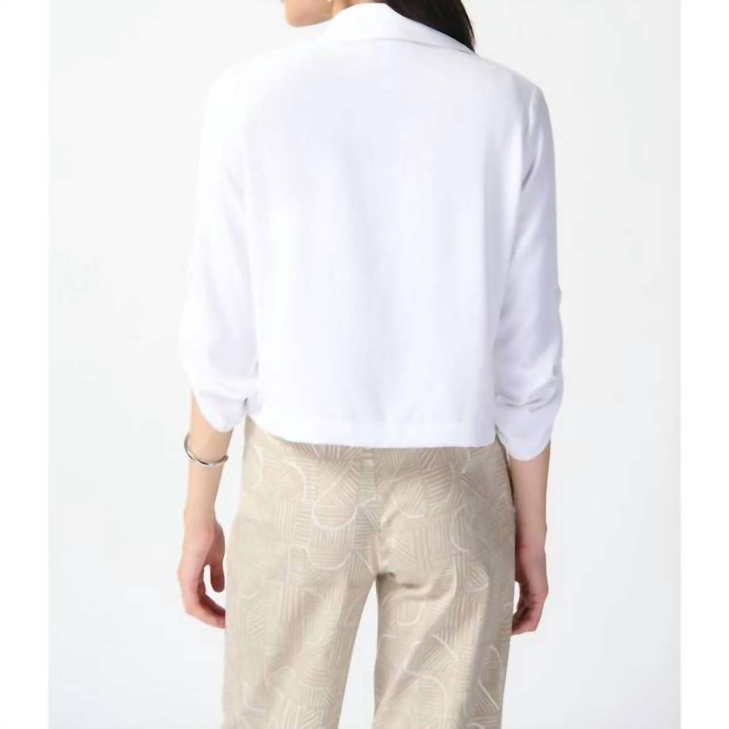 Tailored to perfection, this blazer will be your go-to jacket for years to come. Elevate your summer workwear wardrobe with the Joseph Ribkoff Woven Boxy Blazer in a chic solid vanilla shade. This women's blazer features long sleeves and a structured collar, offering a polished look perfect for engagement occasions. Made from 100% polyester, it ensures durability and a sophisticated drape. Care instructions recommend hand washing and laying flat to dry.