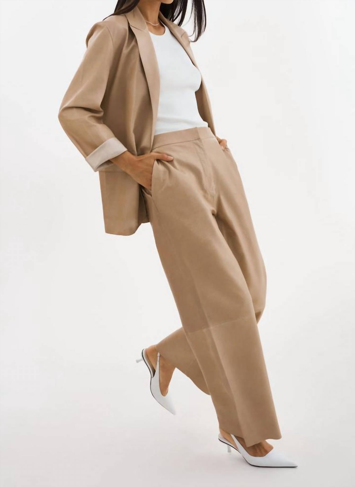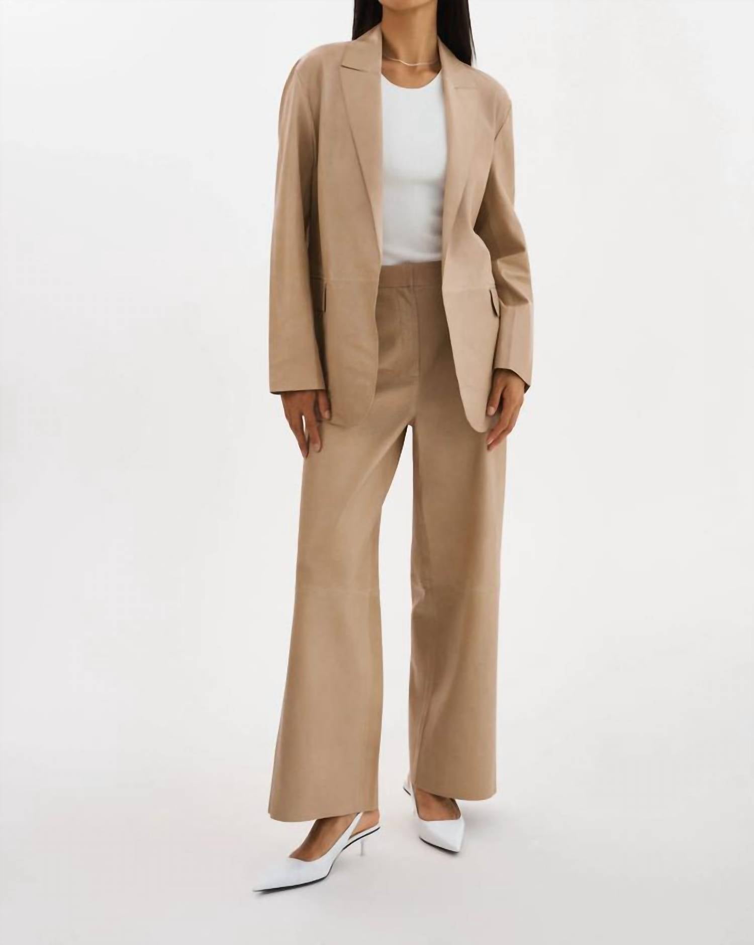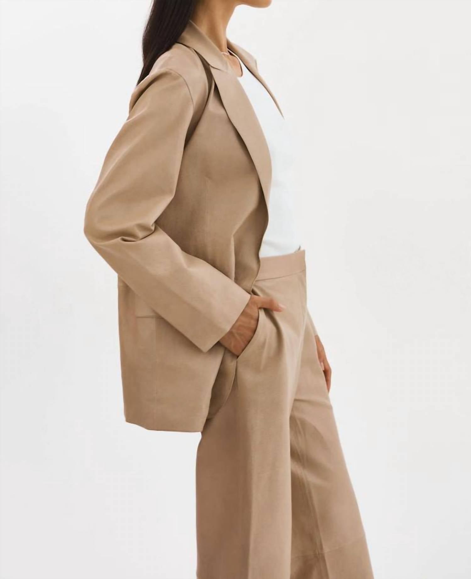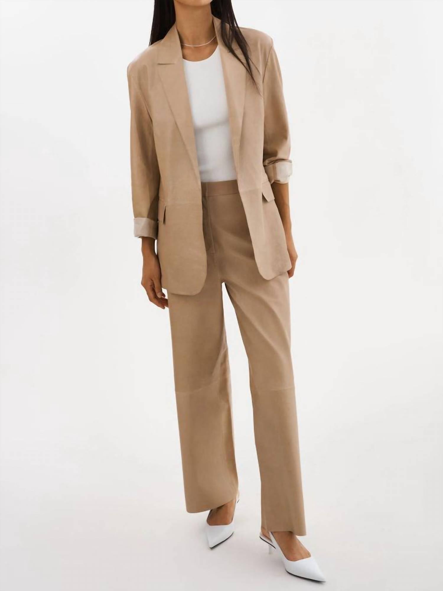 A blazer so versatile you can wear it to the office or pair it with jeans for a more casual look. Elevate your holiday wardrobe with the Quirina Leather Blazer by LAMARQUE, a chic and minimalist piece in Winter White. This leather blazer features long sleeves and a classic collar, making it ideal for a polished look at any Thanksgiving gathering. The solid pattern and pull-on closure offer a seamless blend of style and ease. Perfect for fall occasions, this unlined piece comes with handy pockets for added practicality.