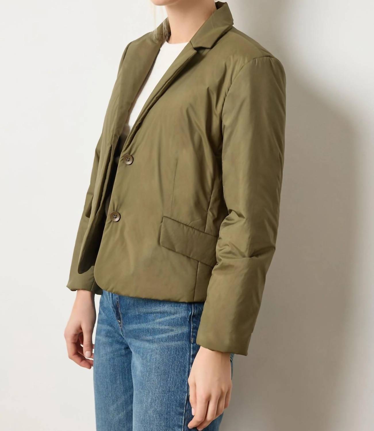 An elevated version of your favorite classic blazer. Discover the Lilla P Long Sleeve Padded Blazer in a stunning Evergreen hue, a chic blend of modern style and classic design. Featuring long sleeves and crafted from 100% Polyester, this blazer boasts a refined high-hip length of 23 1/2" for size Medium. Its hidden button closure, darts, and angled welt pockets offer sophisticated detailing perfect for the fall season. Made for effortless layering, this polished piece is ideal for engagement occasions and workwear trends. Care instructions include dry clean only.