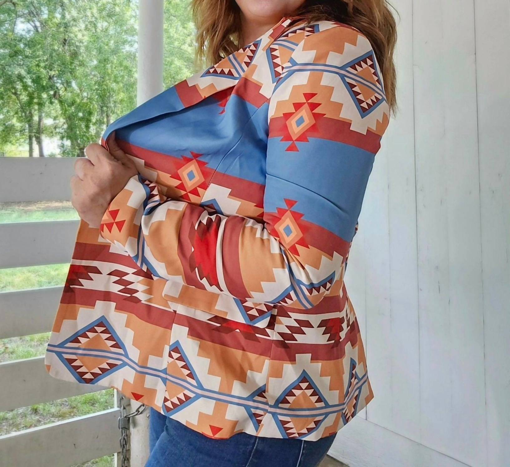 Tailored to perfection, this blazer will be your go-to jacket for years to come. Elevate your spring wardrobe with the Aztec Bundle Blazer by Main Strip, a statement piece perfect for vacation style. This boho chic blazer showcases a vibrant multi-colored pattern with long sleeves and a classic collar, designed for a distinctive, patterned aesthetic. Ideal for Easter holiday and beyond, this piece adds a touch of flair to any outfit.