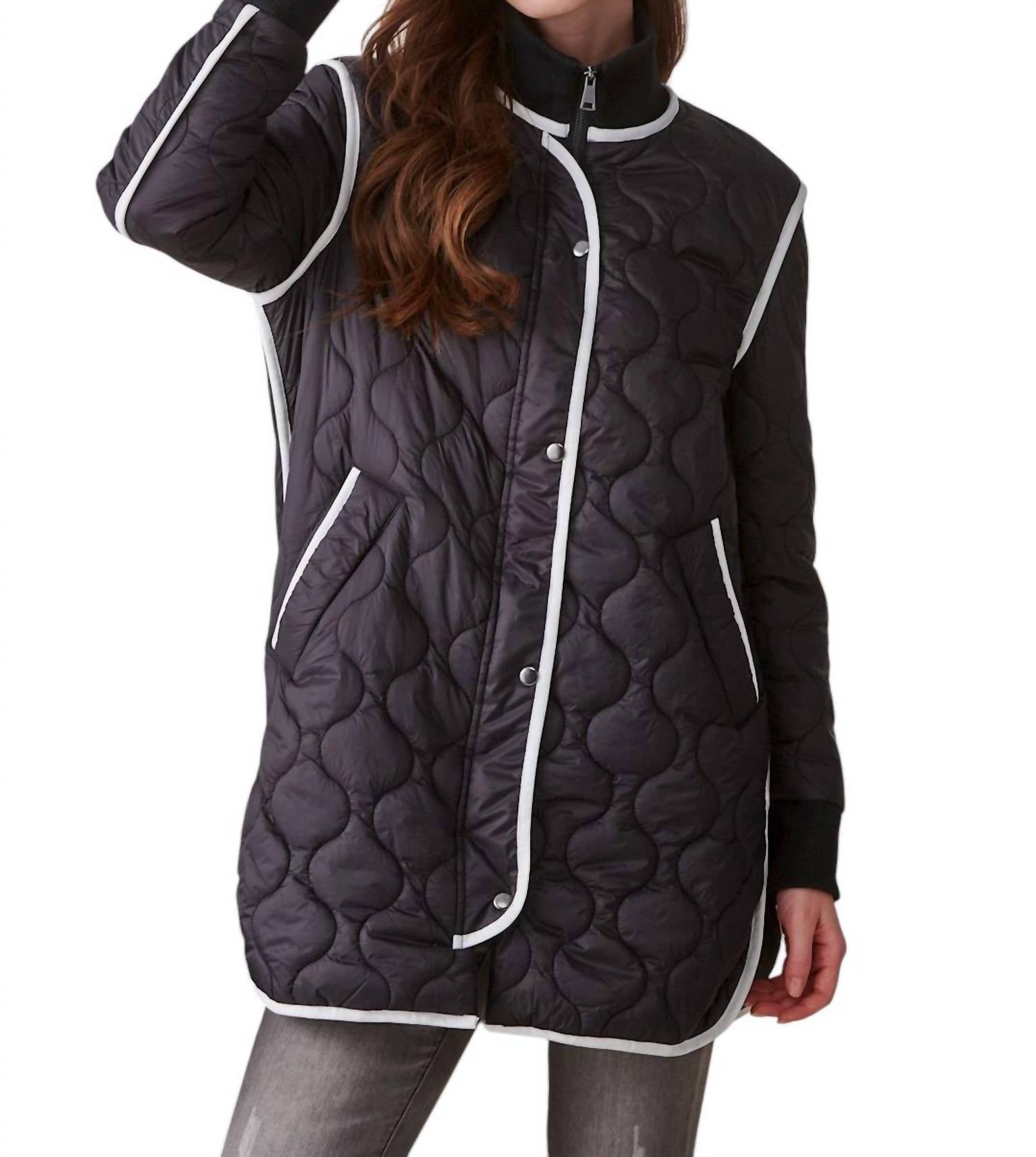 Discover the perfect blend of warmth and style with the Quilted Coat by Giftcraft. This bomber-style coat in black features long sleeves and a unique quilted design, crafted from 100% Nylon with a 100% Polyester lining for lightweight comfort. It boasts a full front zip closure, mock neck, and rib knit cuffs for extra insulation, along with front welt pockets for a touch of urban flair. Perfect for a mid-length look that easily complements any wardrobe, this coat is both practical and chic.