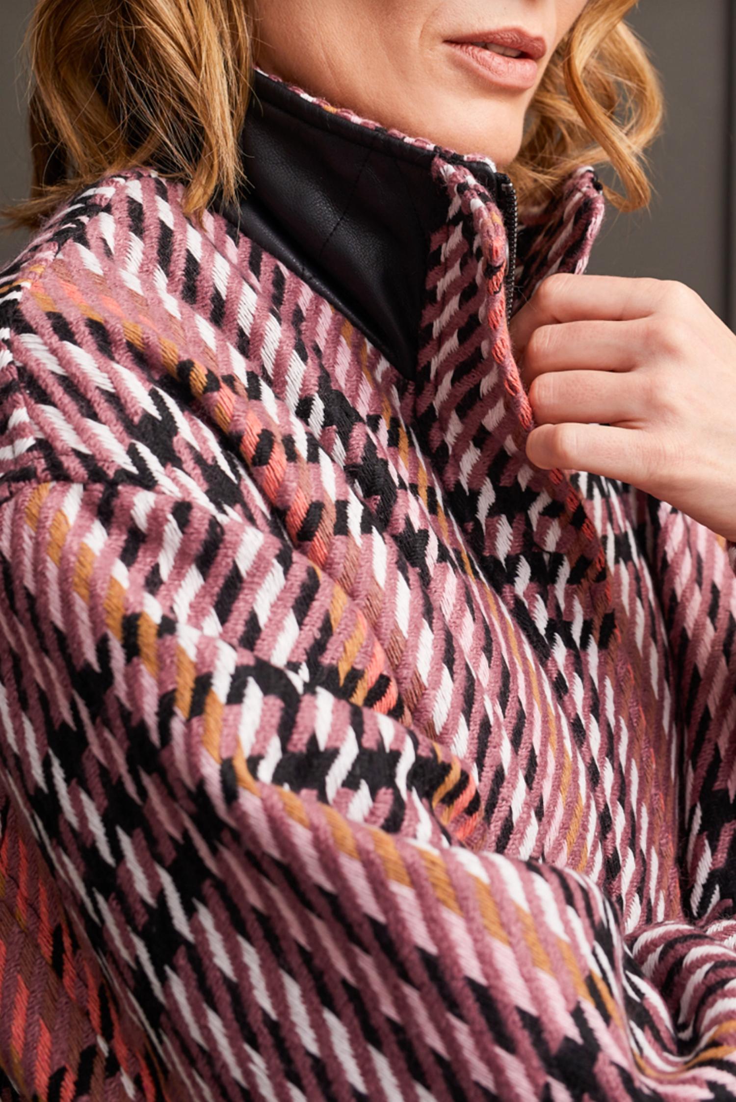 Make any outfit instantly cool by pairing it with this bomber jacket. Designed with a chic plaid pattern, this bomber jacket features long sleeves and stylish faux-leather accents at the collar and cuffs. Its versatile polyester blend composition ensures both comfort and a striking look, while a convenient zip closure allows easy wear. For best results, hand wash and line dry to maintain the jacket's vibrant texture.