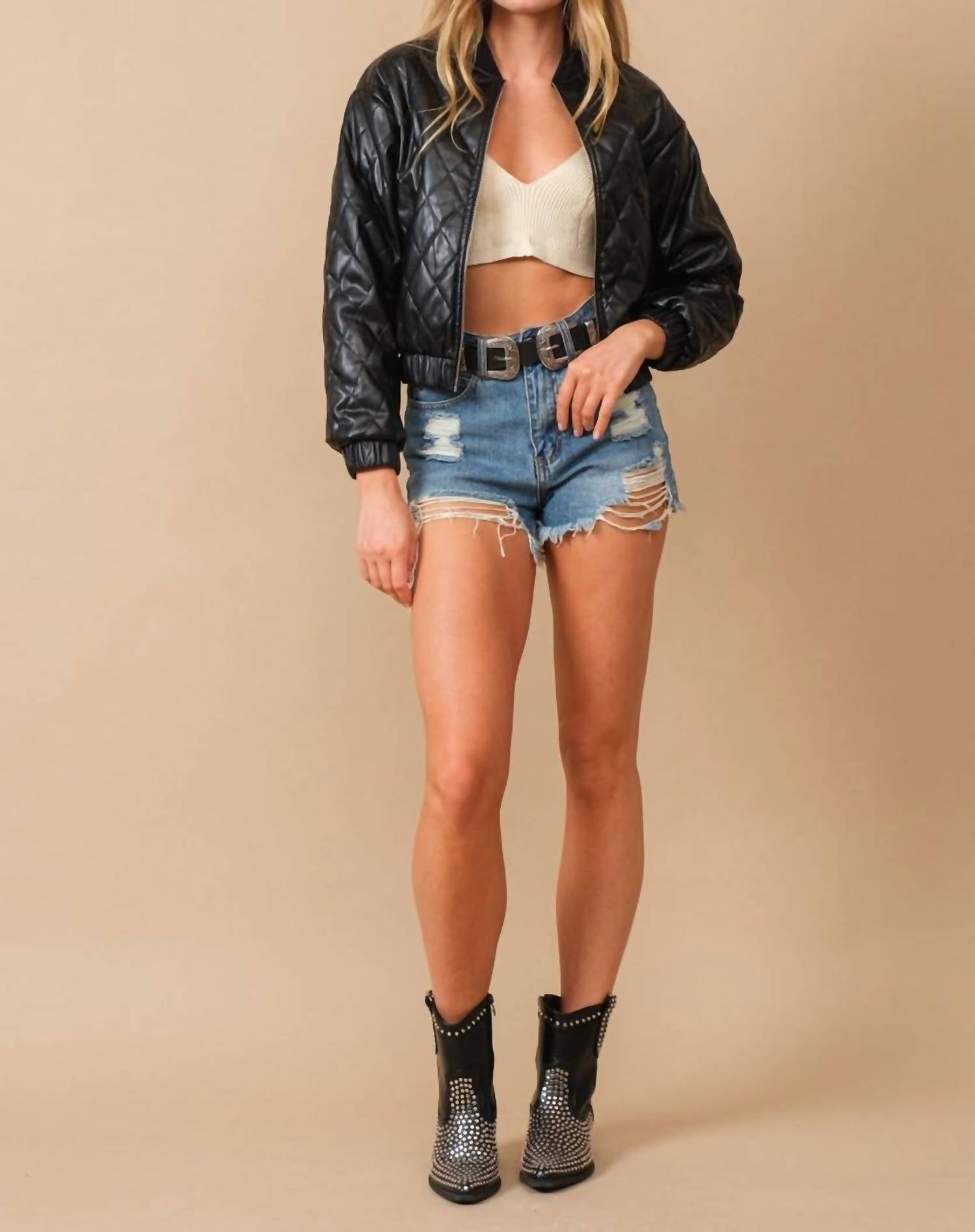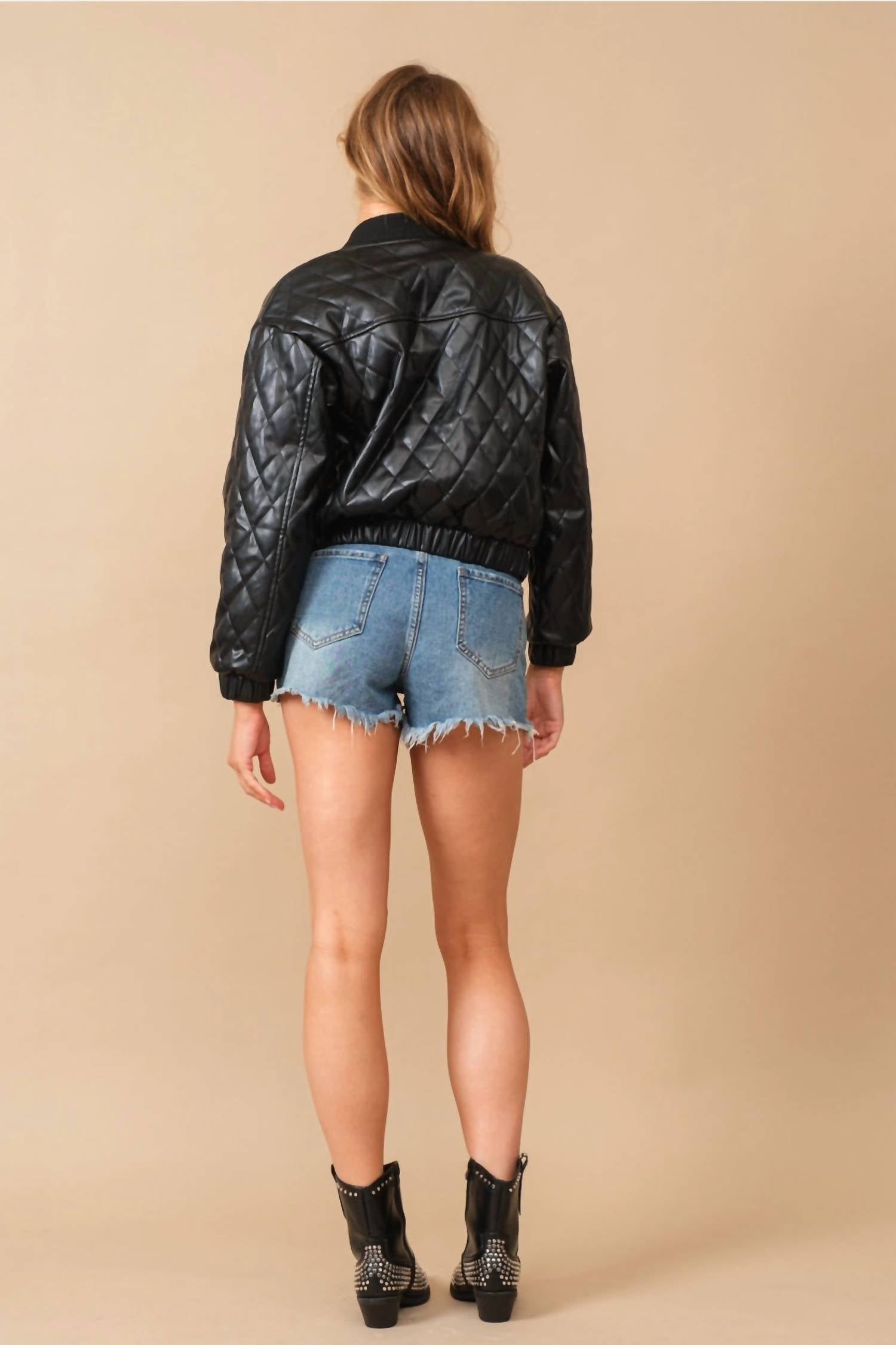 Make any outfit instantly cool by pairing it with this bomber jacket. Upgrade your fall wardrobe, perfect blend of streetwear style and travel-ready comfort. Features long sleeves and is crafted from soft faux fur in a sleek black color, enhanced by quilted detailing. Designed with a classic crewneck and convenient zip closure, also includes functional pockets for added practicality. Care for this patterned jacket is easy with machine wash instructions.