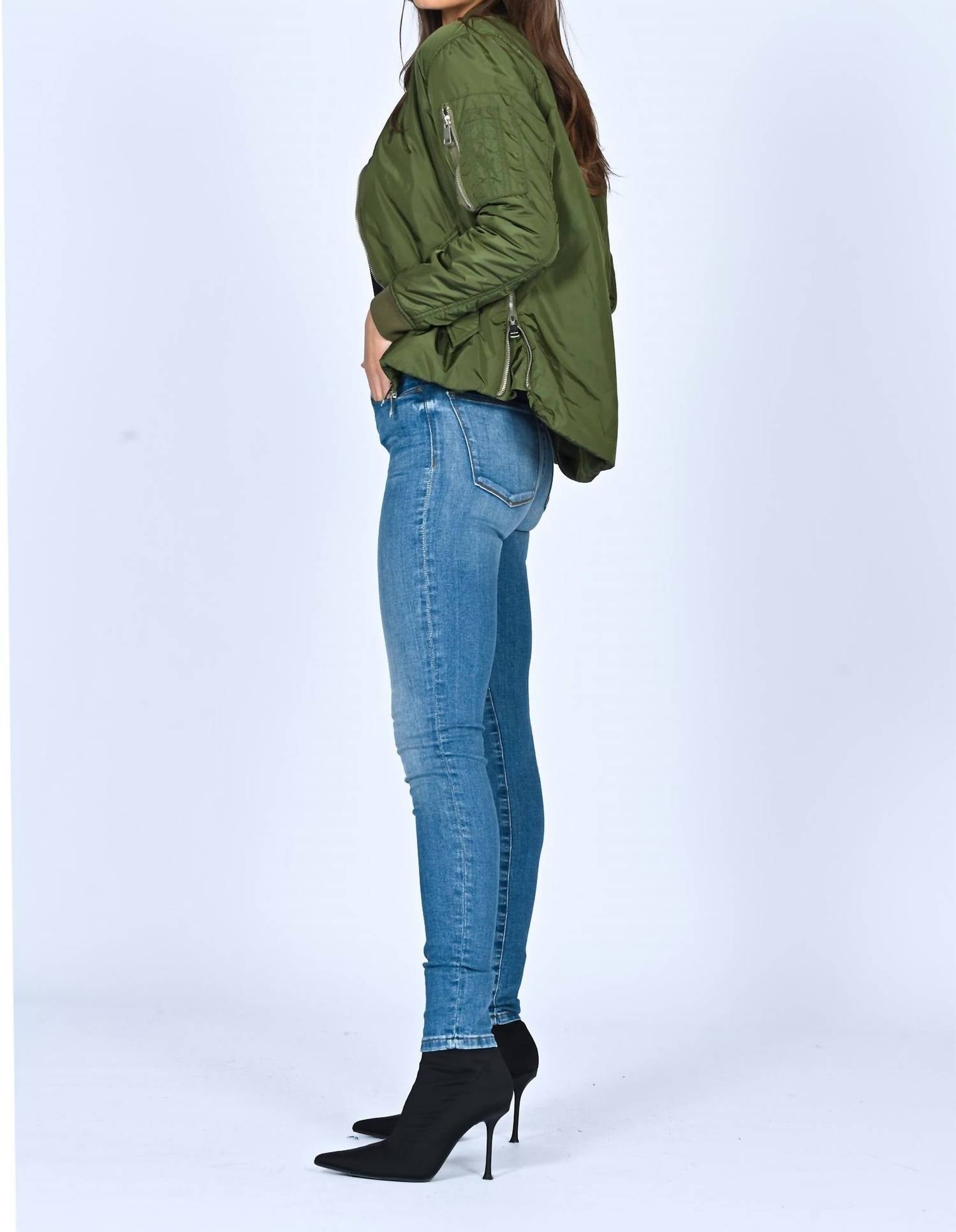 Make any outfit instantly cool by pairing it with this bomber jacket. Discover the BLACK ORCHID Women's Bomber Jacket, a chic piece in a solid army hue designed for a boho-chic look. This jacket features long sleeves and a stylish high low waist, perfect for vacation wear. Closure: Zip closure. Additional Details: Pocket details with zipper for added functionality.