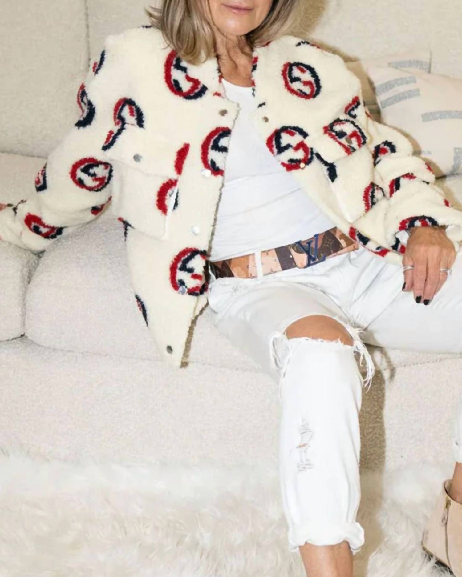 A riff on your favorite classic bomber jacket. Introducing the Maru Bomber by Angel Wings by Lucy, a chic and luxurious piece that blends relaxed style with elegant sophistication. This bomber jacket features short sleeves and is crafted from 100% faux shearling for ultimate comfort and warmth. Designed with a slightly oversized fit, it includes inside clips for a hidden closure and practical side pockets, making it ideal for winter layering. Perfect for travel, this textured, collar-neck bomber in navy, red, and cream is a stylish addition to any fashion-forward wardrobe.