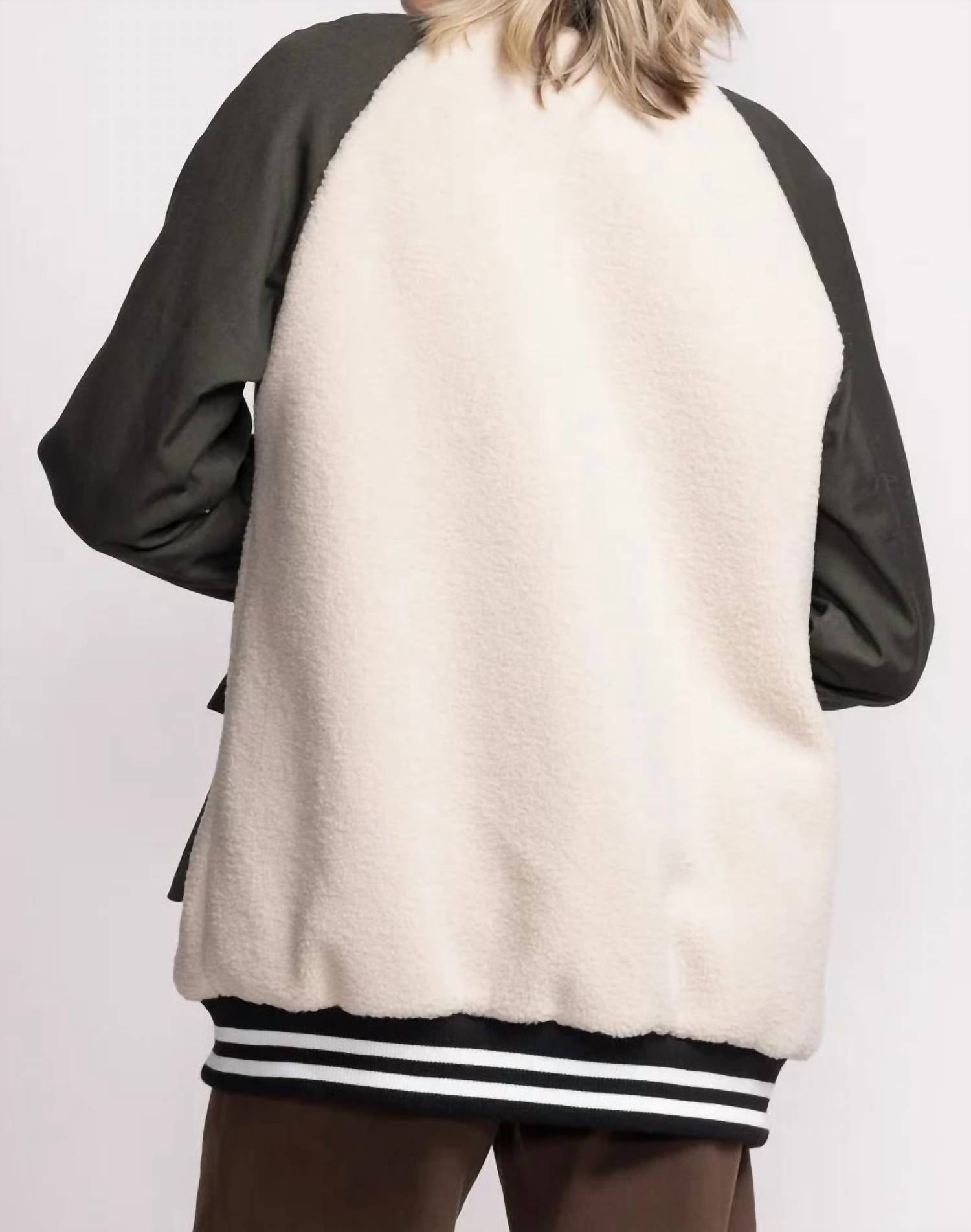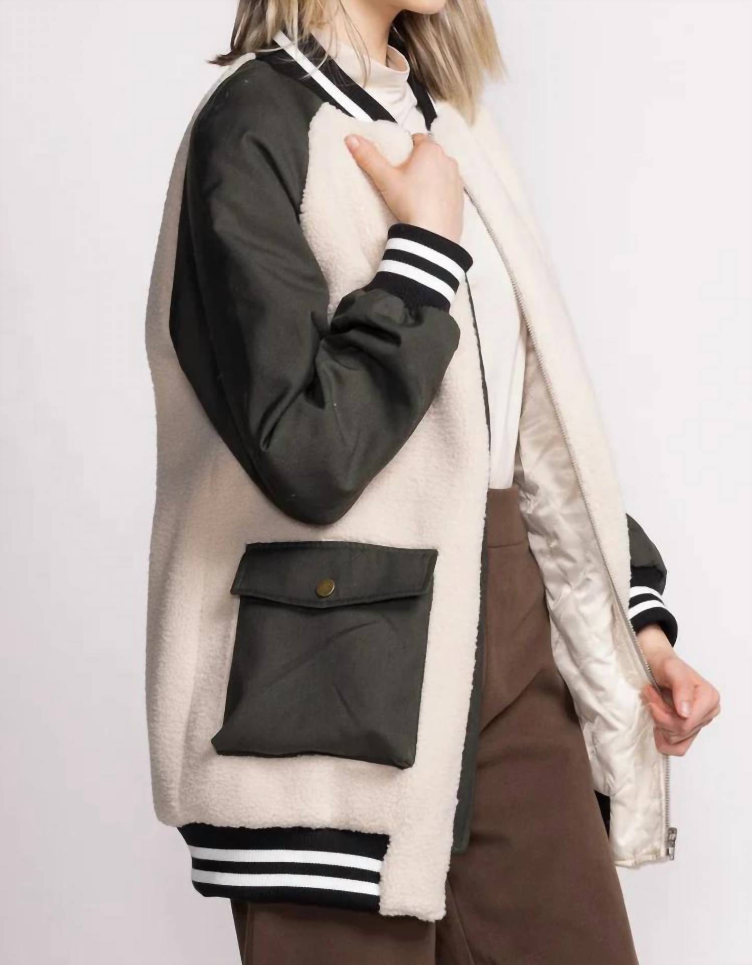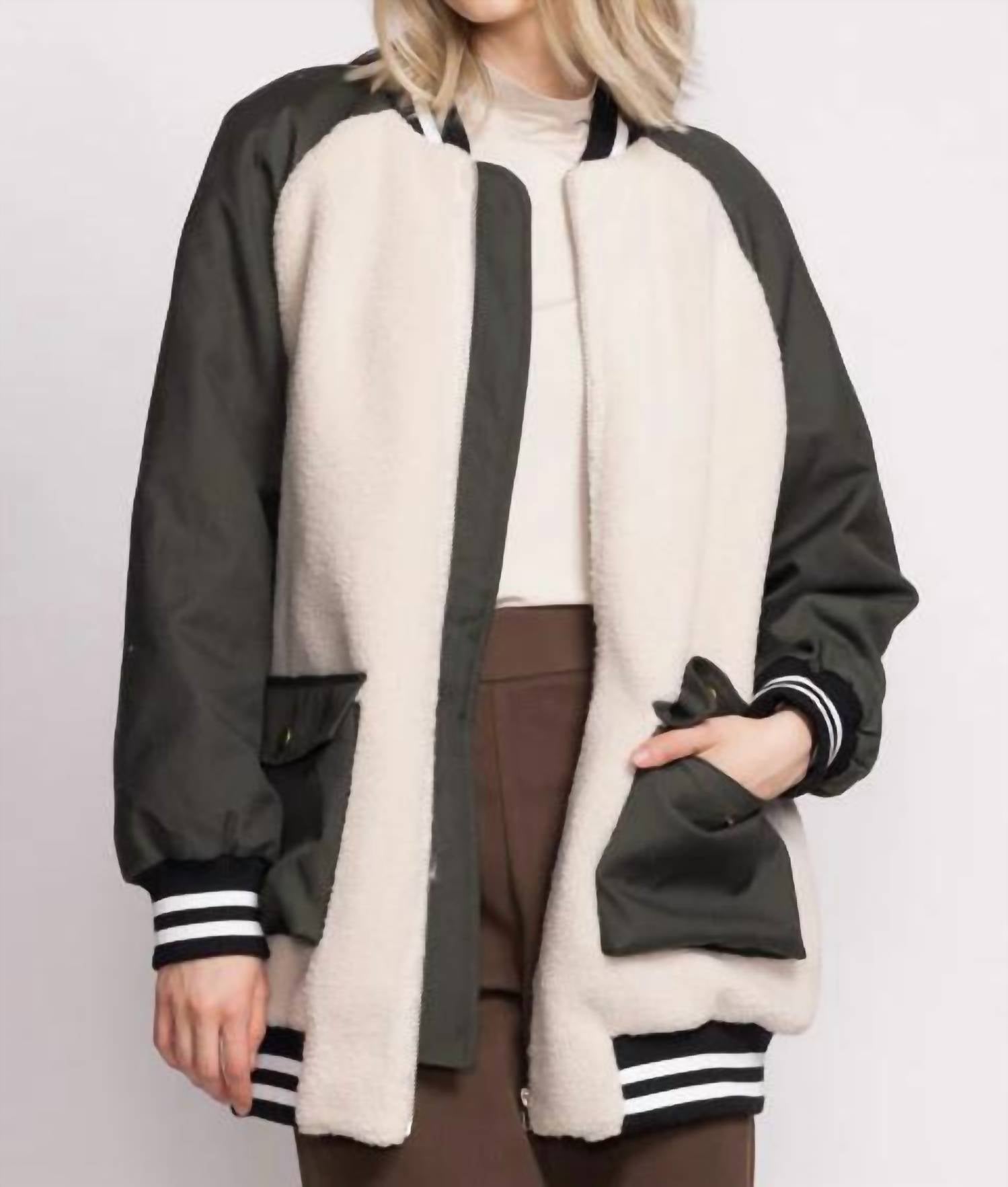 Make any outfit instantly cool by pairing it with this bomber jacket. Style and comfort crafted from 100% polyester. Oversized, long-sleeve jacket in a bold green hue. Features a crewneck design. Fully lined for added warmth. Includes a practical front zip closure, elastic cuffs, hem, and handy front pockets. Stand out effortlessly with this chic and versatile piece in your wardrobe.