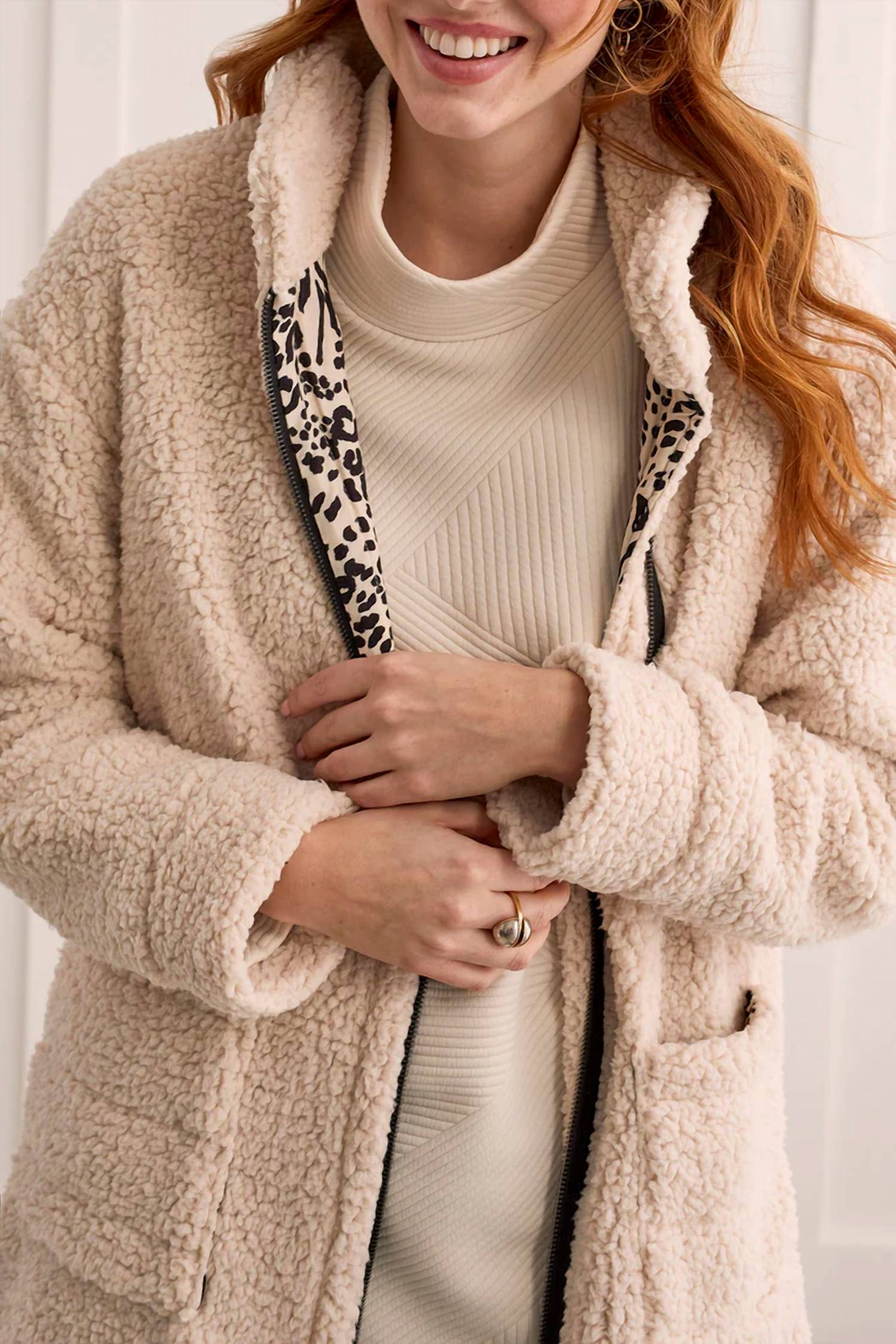 Nothing is cooler than this vintage inspired bomber jacket. This cozy coat features a fun animal-print lining that adds a touch of fierceness, crafted from lightweight sherpa fabric that feels like a warm hug. Designed with a loose fit, a zip-up front, and a mock neck collar, it also includes long sleeves with cuffs and practical front patch pockets. Made from 100% polyester, it requires hand washing in cold water with similar colors, avoiding bleach, and should be line dried with low iron as needed. Model number: 1486O-3791.