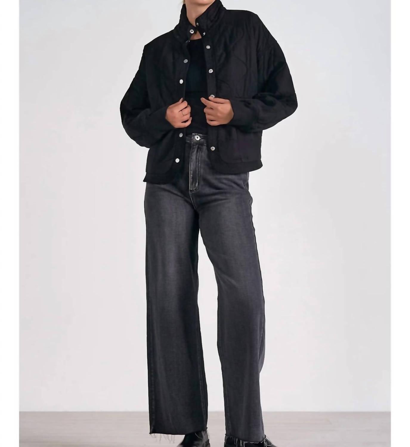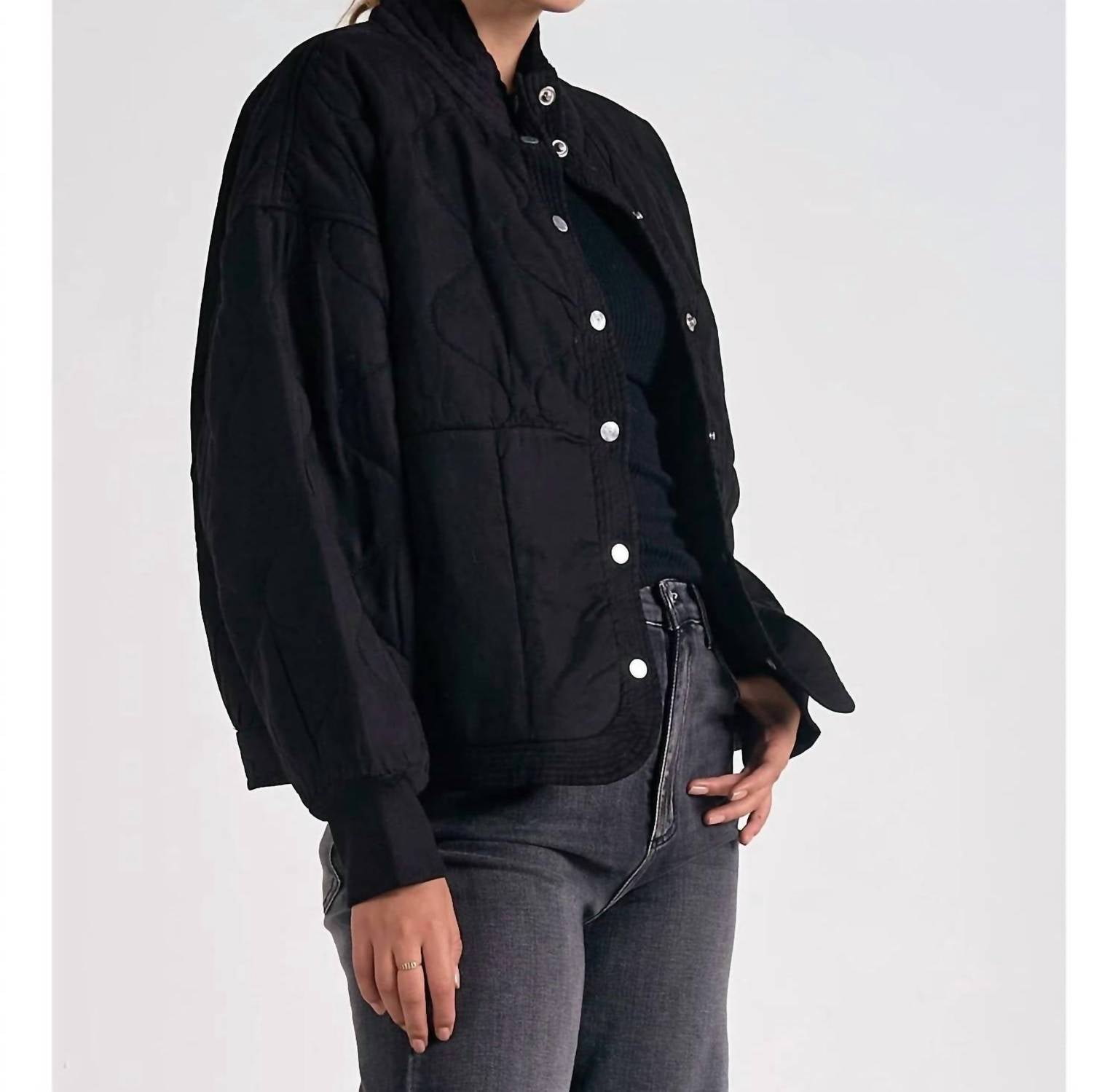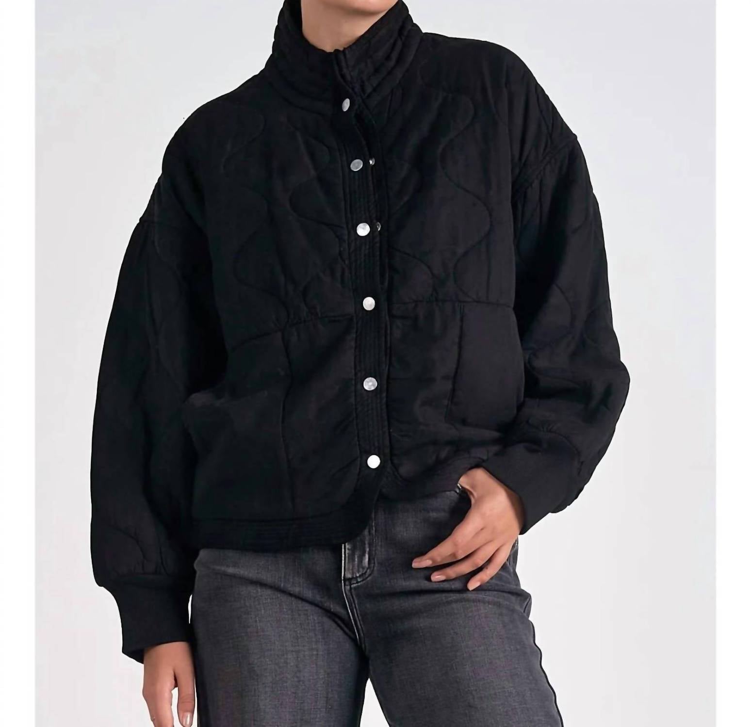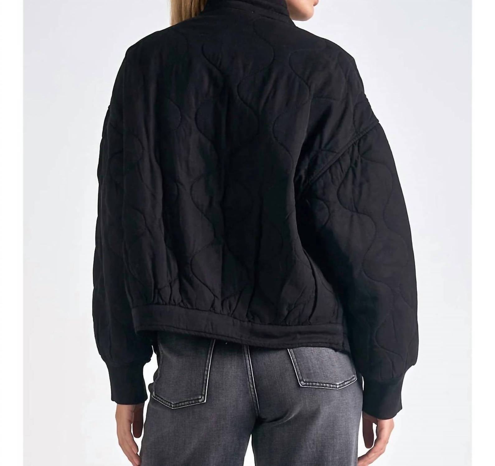 Make any outfit instantly cool by pairing it with this bomber jacket. Embrace effortless style with the Quilted Bomber Jacket by ELAN, designed in classic black. This women's jacket features long sleeves, a collar neckline, and practical pockets, making it a must-have for fall and winter. It includes a warm lining and a convenient snap closure for secure fastening. Enjoy the perfect blend of warmth and lightweight comfort in this versatile solid-patterned piece. Item runs true to size, Model Measurements: Height: 5'11 Bust: 34" Waist: 24" Hips: 36" Model is wearing a size small