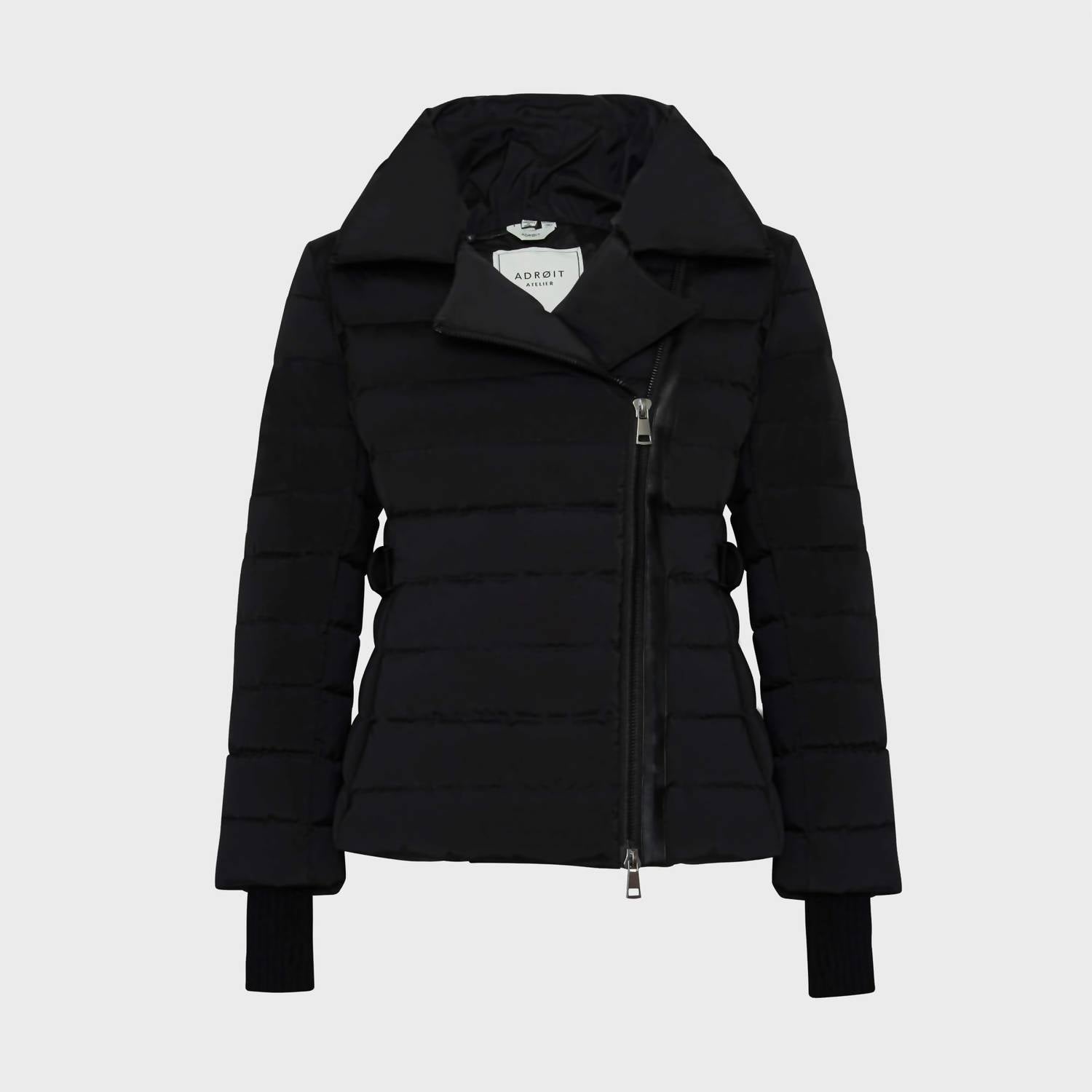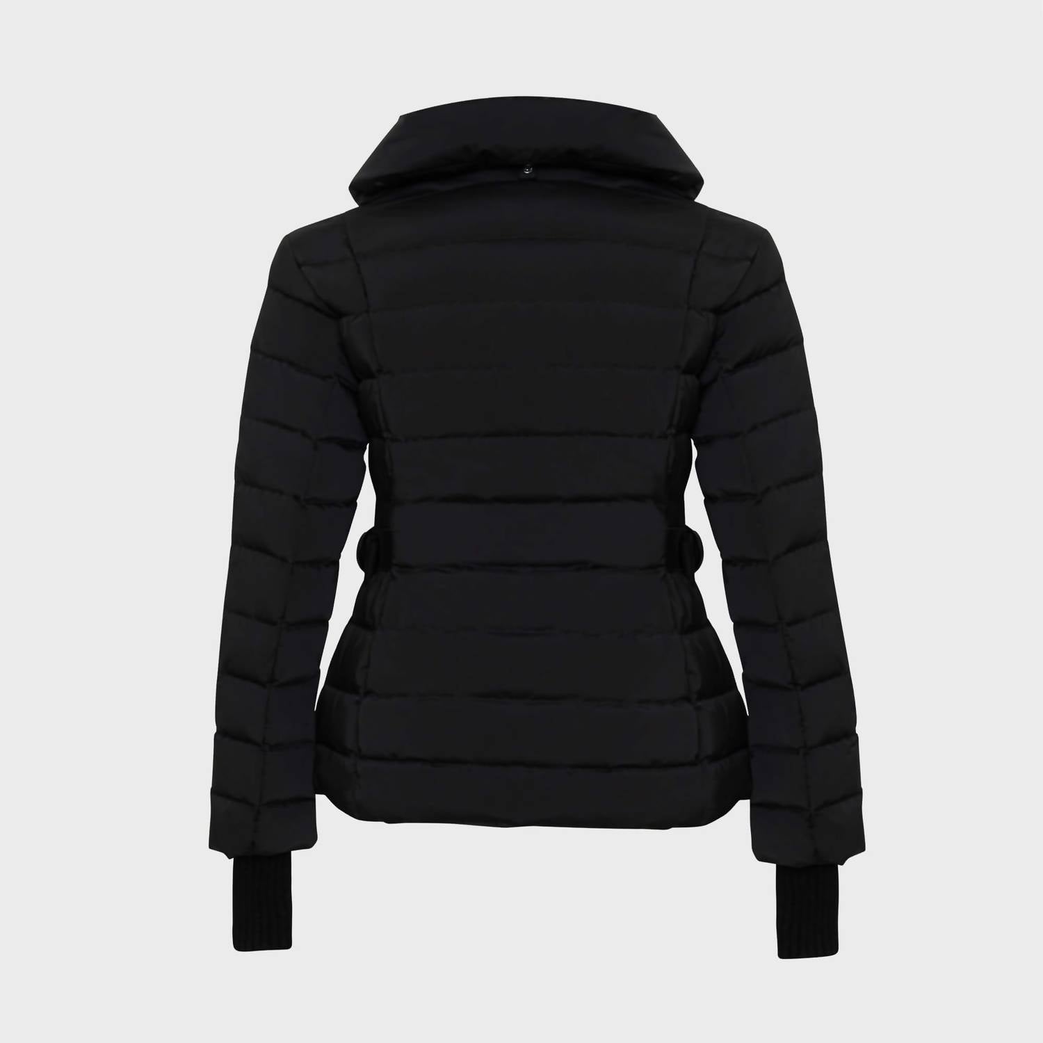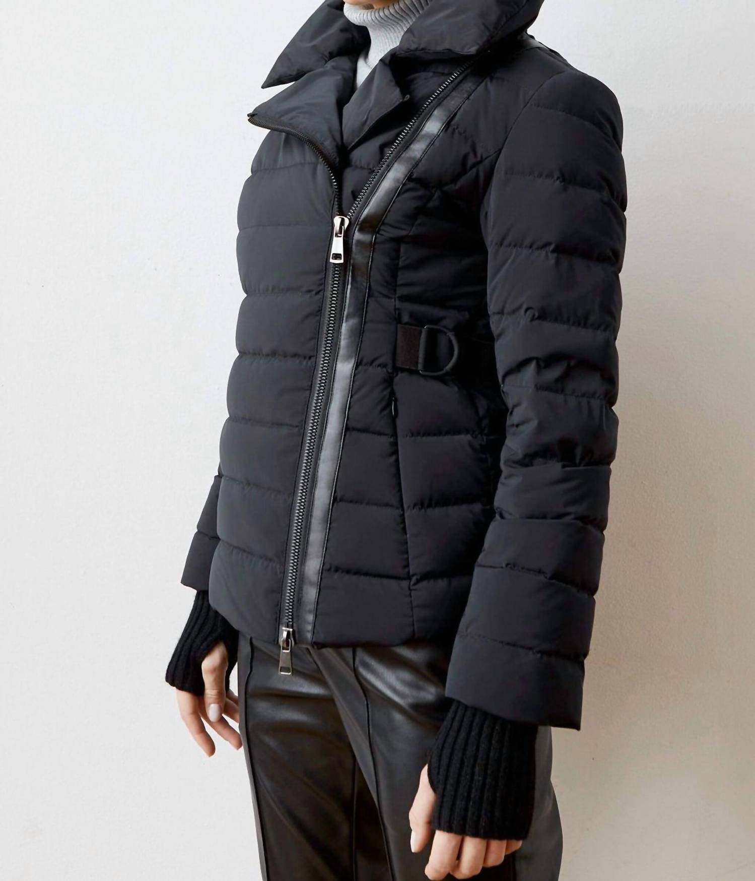 Step out in style with our down filled fitted jacket. Wear it open or fully closed for versatility. The thumb hole cuffs and faux leather trims gives the coat character. Sizing: 0/XS 1/S 2/M 3/L 4/XL