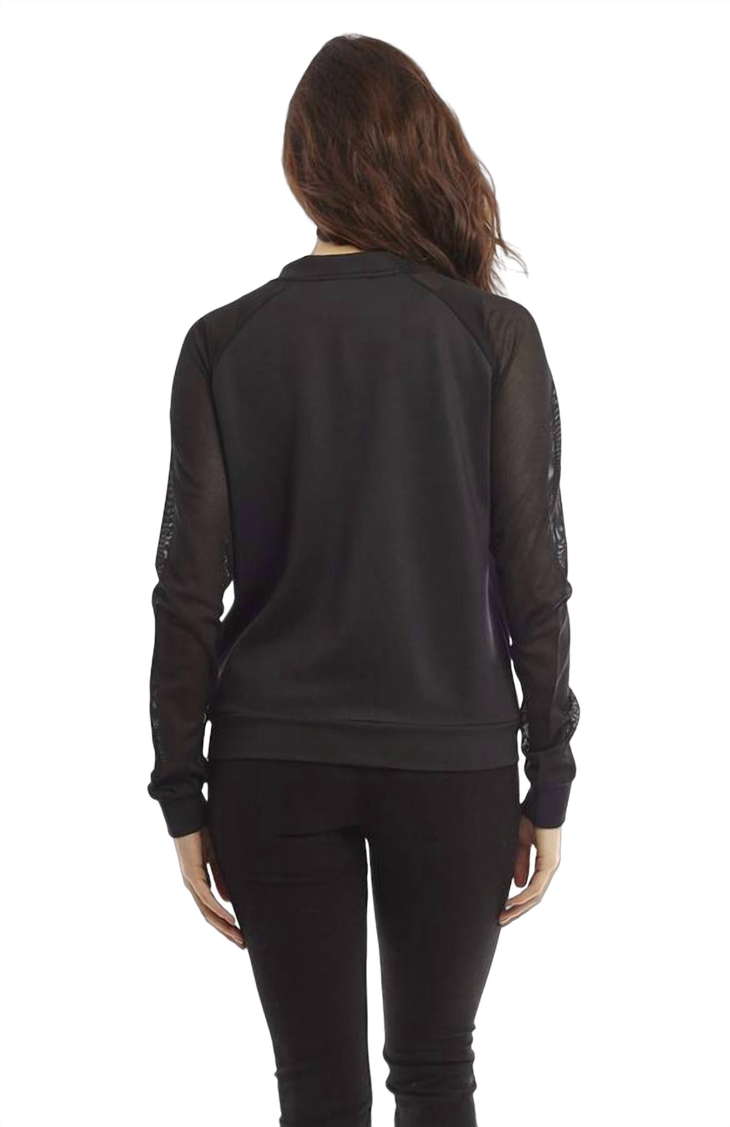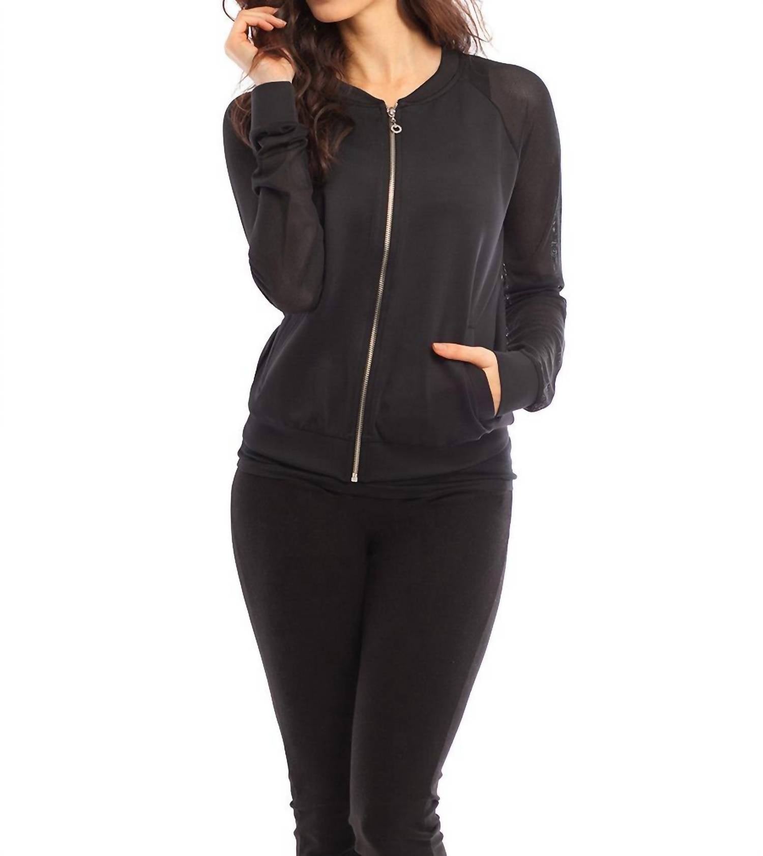 A riff on your favorite classic bomber jacket. fabric & care 100% PolyesterDelicate hand wash or dry cleanoverviewImportedfrench kyss bomber jacketZip-front stylingLong sleevesHits at hip