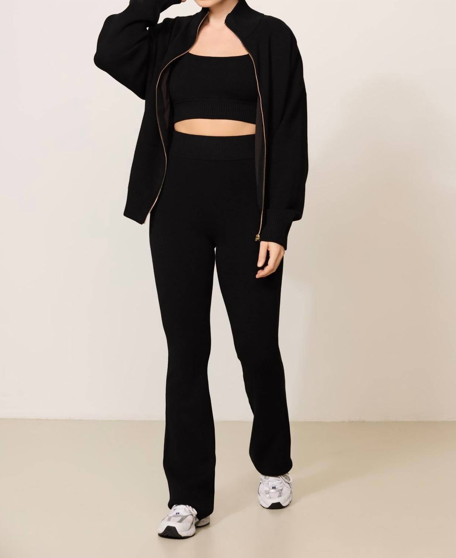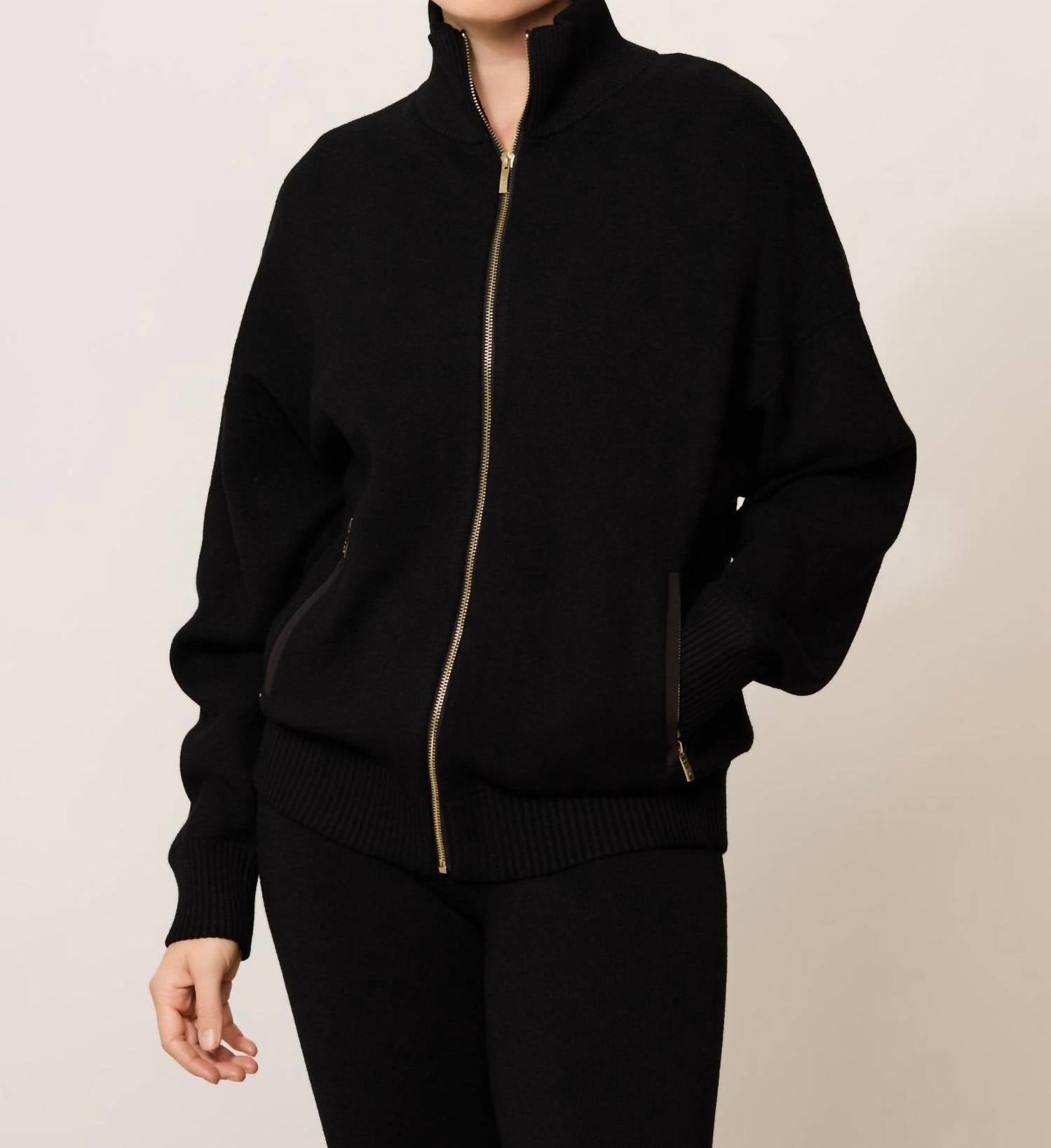 Introducing the Olly Bomber Jacket by LUNE ACTIVE in sleek black for a chic yet cozy addition to your wardrobe. This long-sleeve jacket is crafted from an eco-conscious blend of 78% ECOVERO™ Viscose and 22% Polyamide, ensuring a soft touch and sustainable choice. Garment length measures at 62.5 cm, with a chest width of 57 cm and sleeve length of 51 cm, resulting in an oversized, loose fit. Made in Turkey, this stylish piece features a full zip closure, ribbed cuffs, and zipped pockets, with easy maintenance through machine washing.