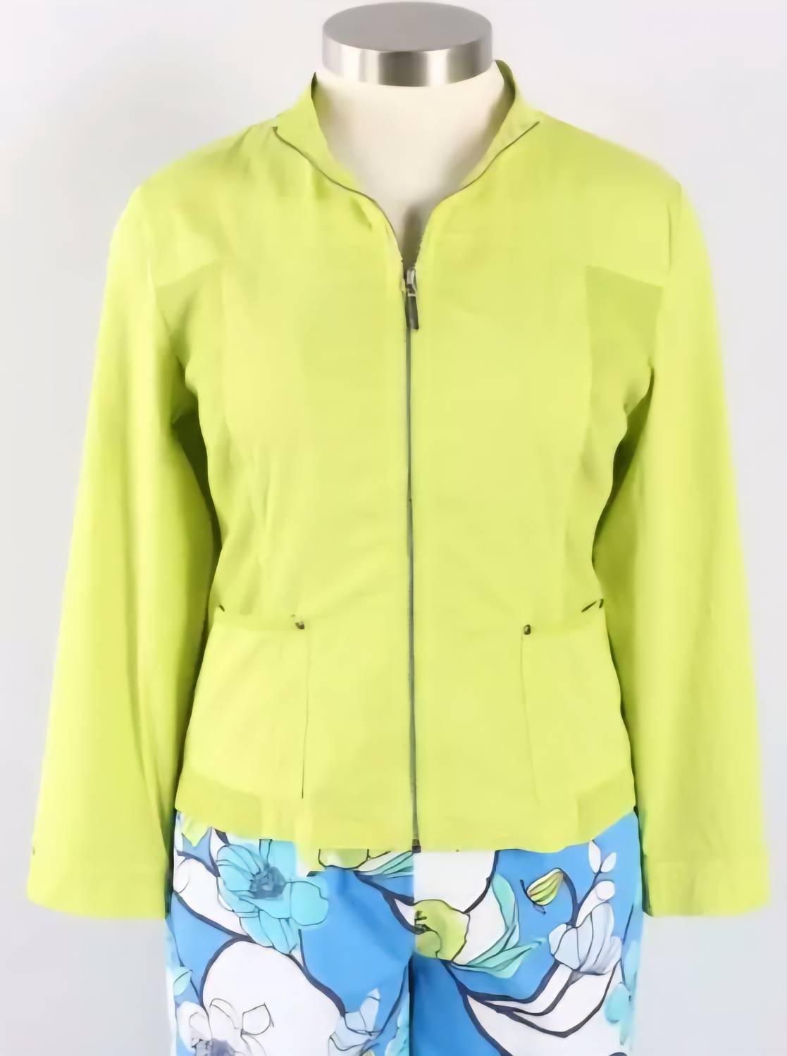 Make any outfit instantly cool by pairing it with this bomber jacket. A layering staple! The perfect travel companion. Featuring a stretch cotton spandex body with rib knit side panels, zip front with patch pockets and a stand collar. This stylish jacket is a great addition to your spring/summer and travel wardrobe. Machine wash cold gentle, tumble dry low Small measures 38" bust, 22" length Medium measures 40" bust, 23" length