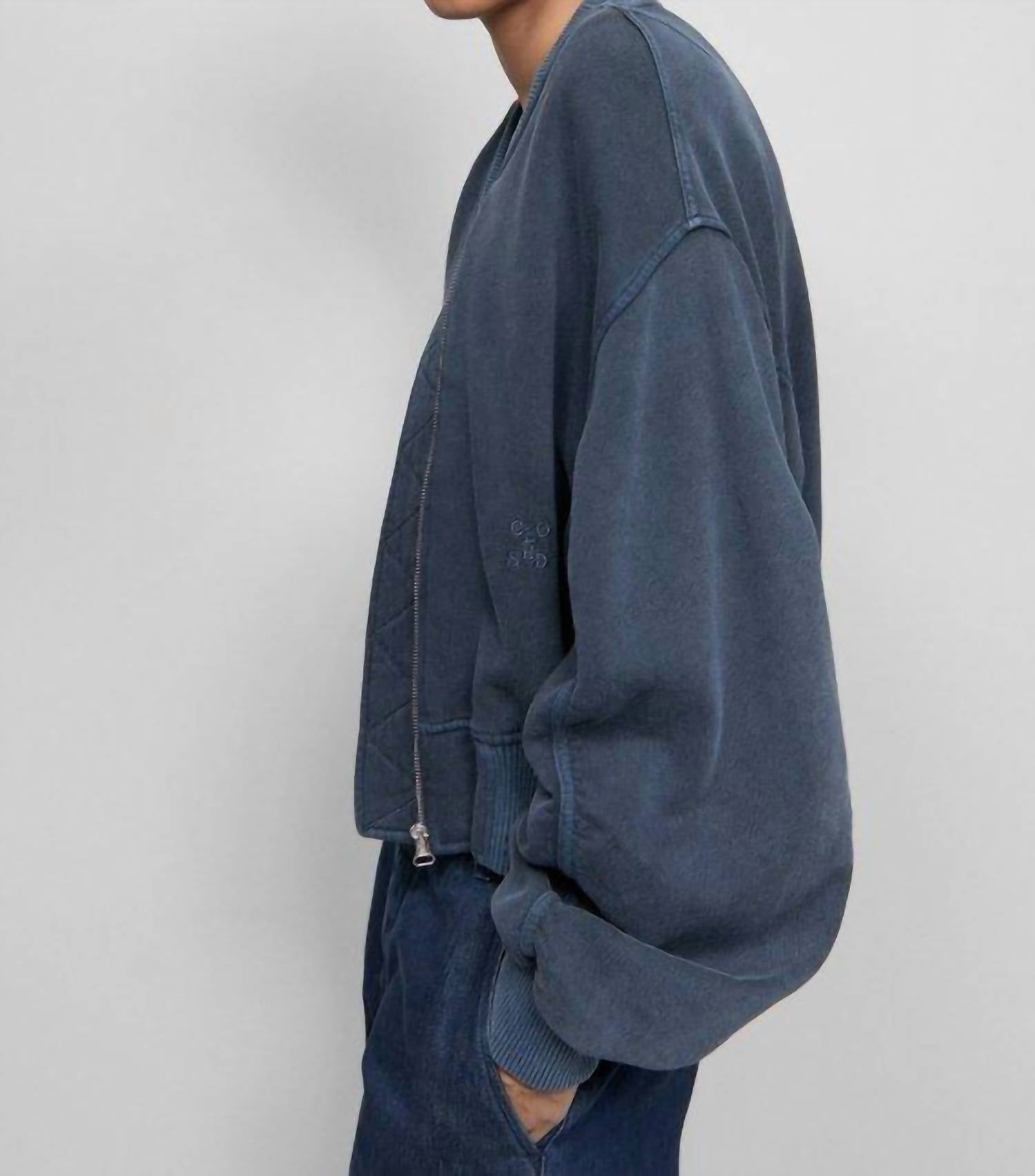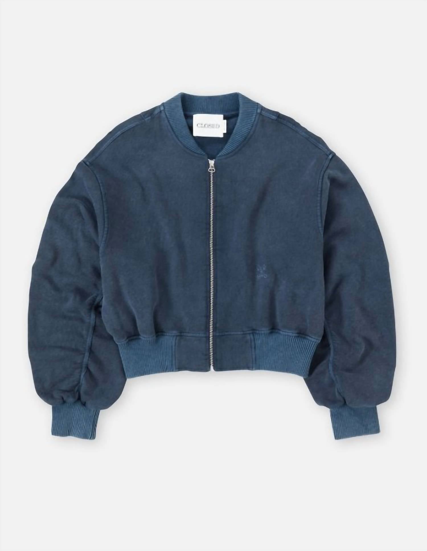 A riff on your favorite classic bomber jacket. Elevate your wardrobe with the Sweatshirt Bomber Jacket by CLOSED, an effortlessly stylish piece in a calming blue hue. Crafted from 100% organic cotton, this jacket features a brushed interior for ultimate comfort and showcases long sleeves with elasticated seams. Its relaxed fit and ribbed cuffs on the collar, sleeves, and hem offer a subtly worn-in look. Made in Turkey, it comes with a zip closure and is designed for easy care; simply machine wash and line dry. Length: approximately 57 cm / 22.44 inches. Model is wearing size S (1.78 m / 5'83" height).