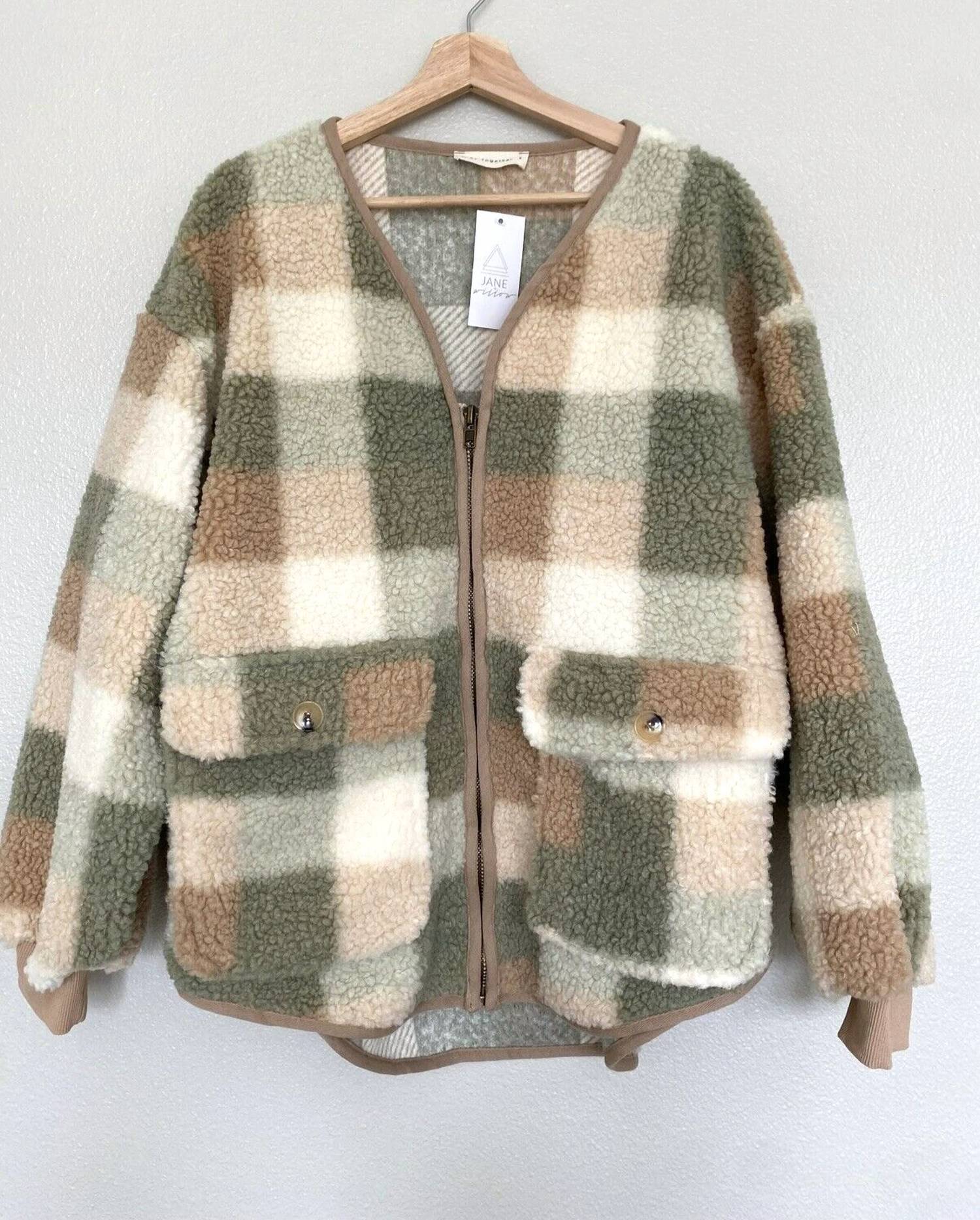Nothing is cooler than this vintage inspired bomber jacket. Introducing the Ruth Checkered Sherpa Jacket by By Together, an elegant choice for those chilly days with its soft, warm Sherpa material. Featuring long sleeves and a timeless green and taupe checkered pattern, this jacket also includes a convenient zip closure and front pockets for added practicality. Perfect for fall vacations or minimalist fashion enthusiasts, this versatile piece offers both style and comfort. Care instructions include machine wash.