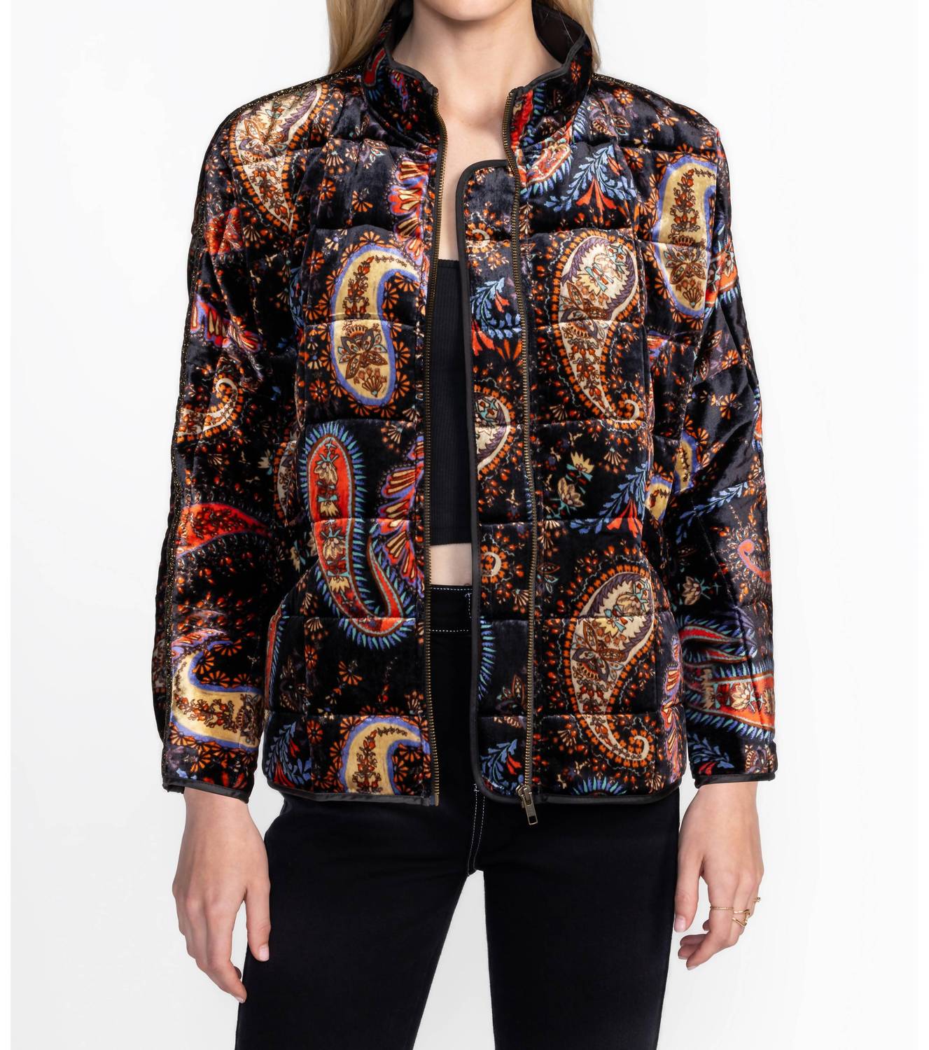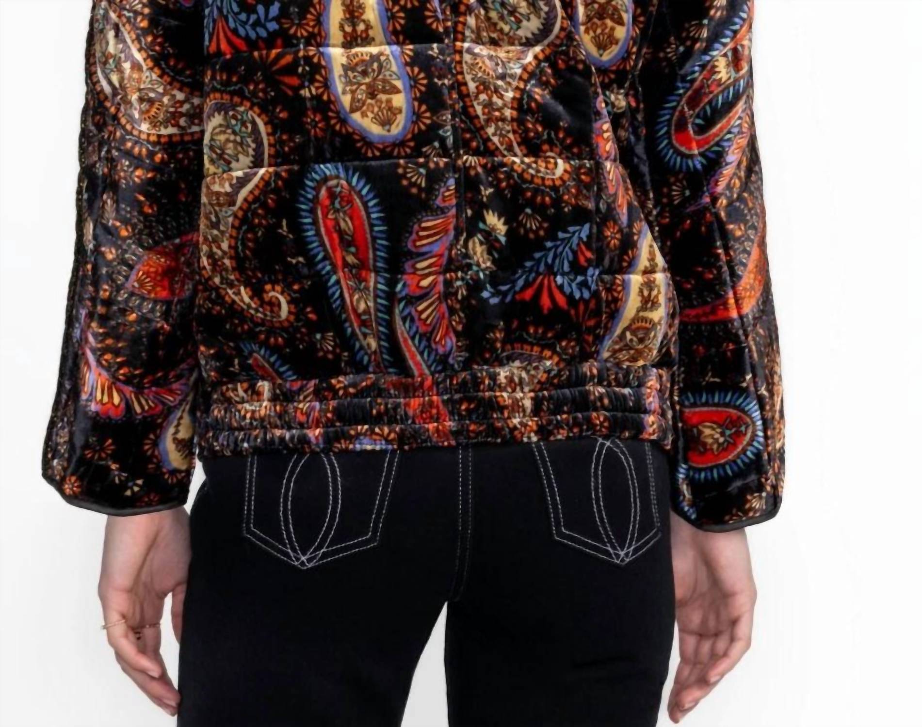 Nothing is cooler than this vintage inspired bomber jacket. Introducing the Sezana Dolman Quilted Jacket by Johnny Was, a bold statement piece in a vibrant paisley pattern. This long-sleeve bomber jacket is crafted from a luxurious 82% Rayon and 18% Silk blend, coupled with a 100% Polyester lining for added comfort. It measures 24 inches from the top of the shoulder to the hem and features a convenient zip closure with front pockets. Designed for women, this jacket is best maintained through dry cleaning.