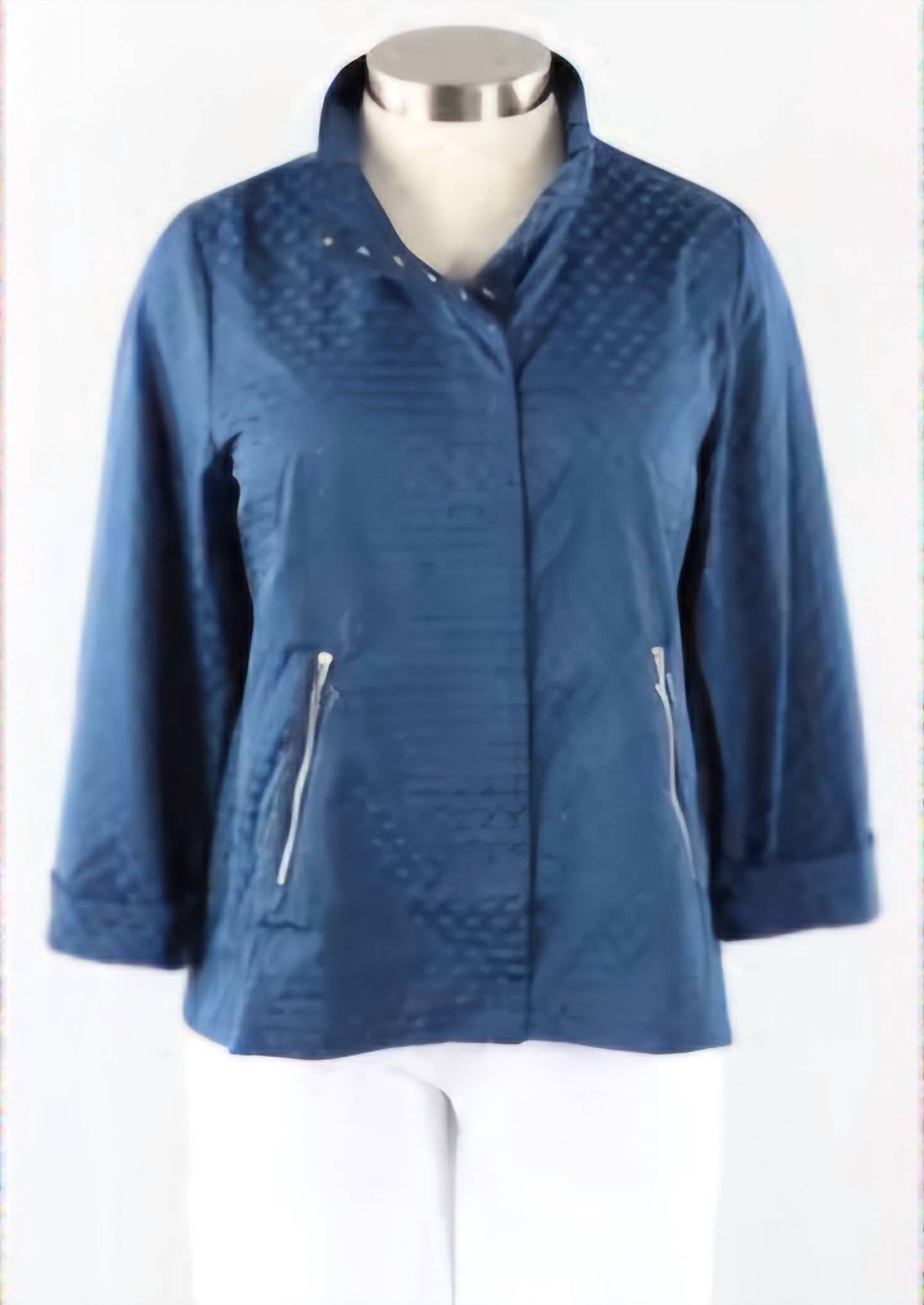 A riff on your favorite classic bomber jacket. Endlessly useful, the Urban Jacket has a crisp windbreaker feel and a street chic look. Snap it all the way up for a funnel neckline, or down and folded over for a spread lapel look. A subtle tone on tone dot pattern on lightweight fabric adds personality and is perfect for travel. 100% polyester machine wash cold, tumble dry low small measures 42" bust, 24-27" length