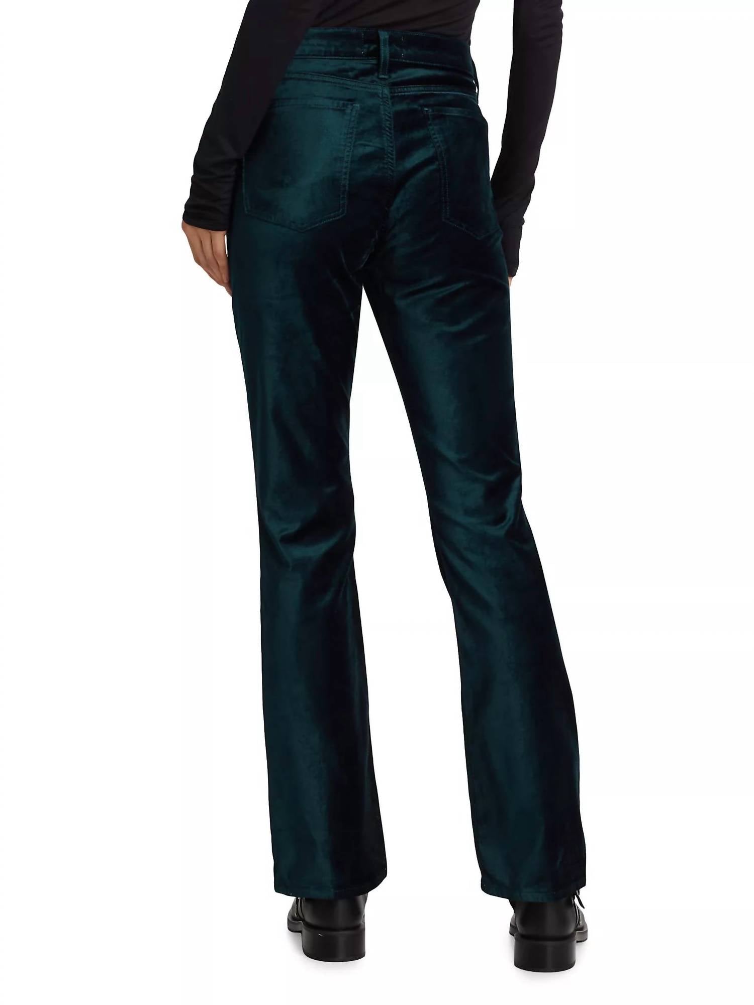 If you're looking for boot-cut, this is the jean for you. Introducing the Nico Hi Rise Boot-cut Jeans by AGOLDE, crafted from a luxurious cotton blend for a velvet look and feel. These jeans feature a high-rise waist, boot-cut silhouette, and regular fit, complemented by belt loops and ample pocket space, including side slip and back patch pockets. With a secure zip fly and button closure, these trousers are both stylish and practical. Composition: 50% cotton, 48% rayon, 2% spandex. Care: Dry clean. Origin: Imported. Ideal for women seeking a chic streetwear look for evening events this spring.