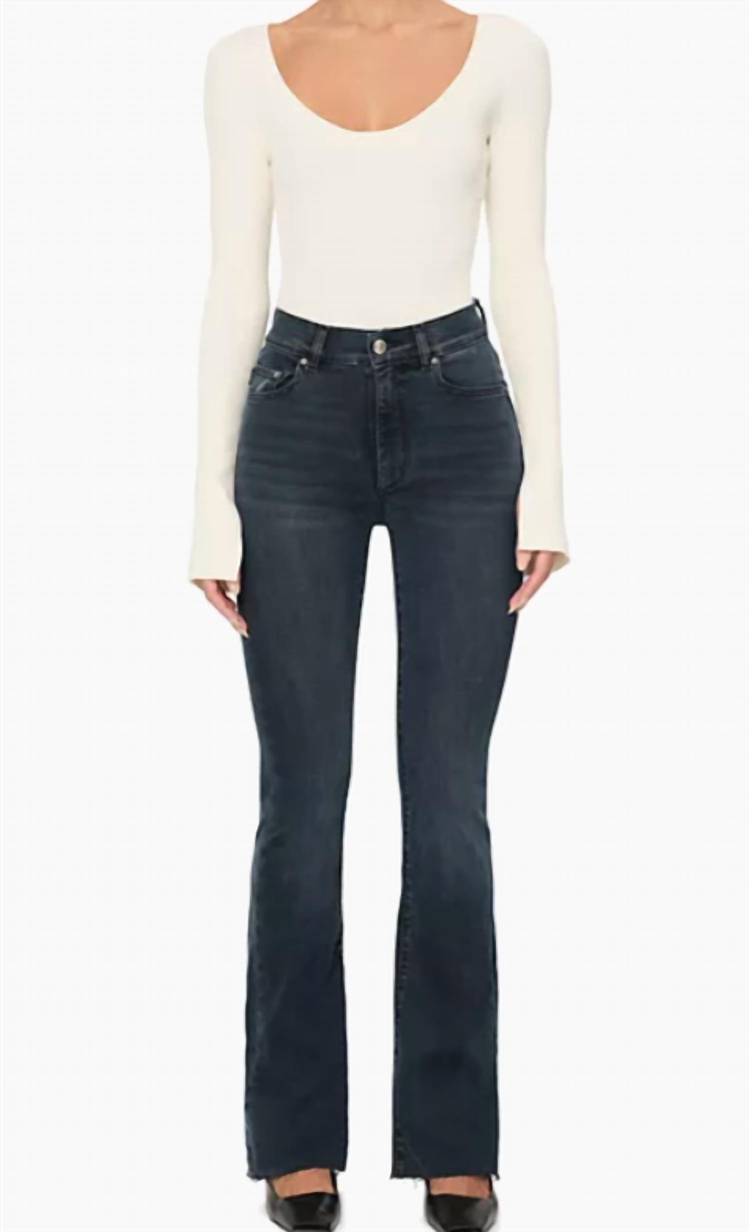 Just add boots! Bridget is a high-rise, boot cut fit with a 31.5'' inseam that utilizes our Instasculpt technology to smooth, sculpt, and conform to your body for the perfect fit. Grecian is a dark wash with subtle fading and whiskering.