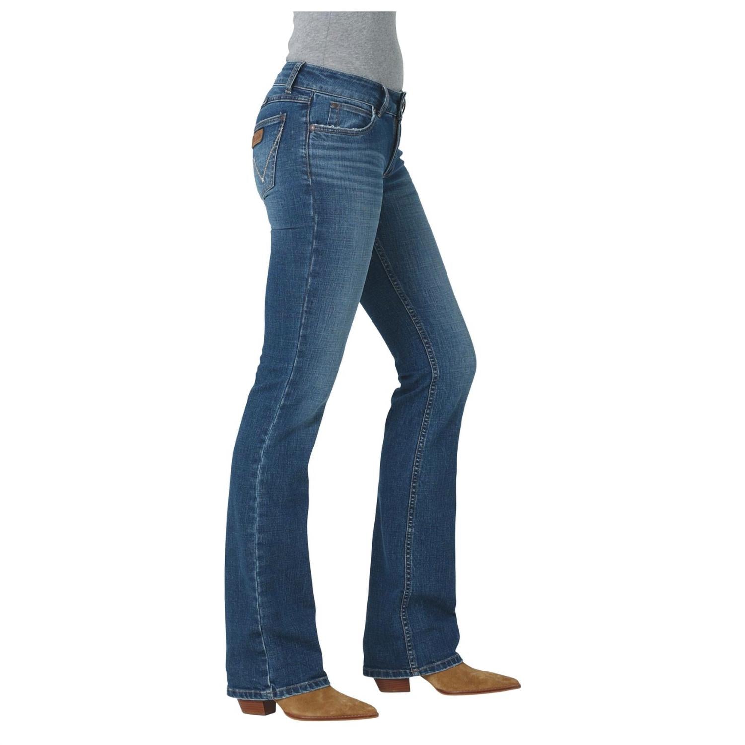If you're looking for boot-cut, this is the jean for you. Introducing the Retro Mae Mid Rise Bootcut Jean by Wrangler, an essential piece for any wardrobe with its timeless bootcut leg style and flattering mid-rise fit. Crafted from a comfortable cotton blend of 99% cotton and 1% spandex, these jeans offer just the right amount of stretch. Featuring classic 5-pocket styling and distinctive "W" stitching on the back pockets, these jeans are both functional and stylish. Closure: Zip-fly with button closure.