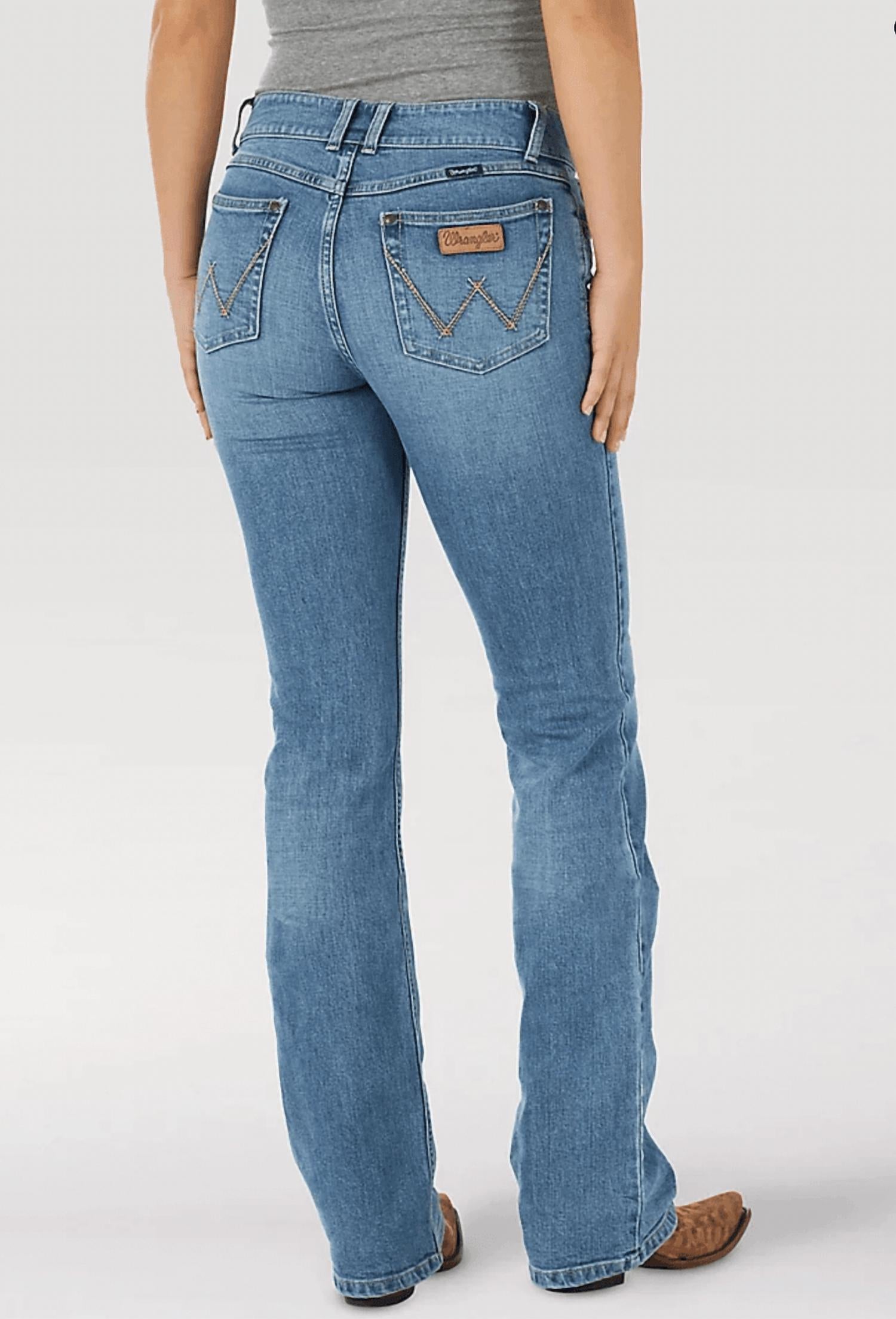 Mid rise. Bootcut. Regular fit. Whiskering on front legs. Five pocket styling. Minimalist Wrangler "W" stitching on back pockets. Wrangler leather patch on back pocket. 99% Cotton, 1% Spandex. Imported.