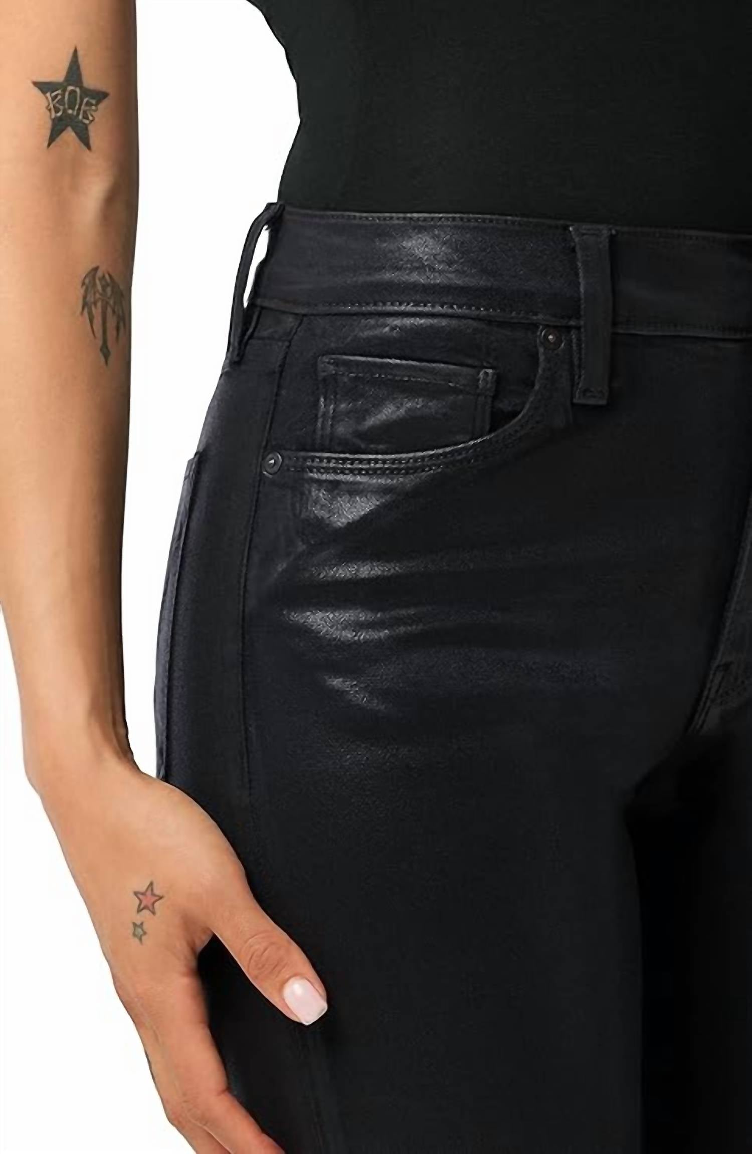 A boot-cut jean that not only looks good on, you'll be comfortable in them all day. Elevate your summer wardrobe with the Barbara High Rise Bootcut Petite Jean by Hudson, crafted in a versatile Noir Coated Cotton Blend. Designed with a flattering bootcut leg, these jeans offer a minimalist and chic look perfect for vacation occasions. Featuring a practical button closure with functional pockets, these jeans ensure both style and convenience. Care is simple with machine wash instructions provided.