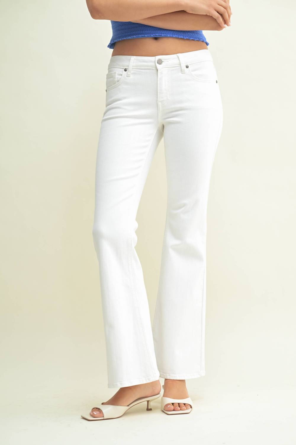 Just add boots! Introducing the Low Rise Western Bootcut by JBD., a chic choice perfect for a holiday party. Featuring a flattering low rise and bootcut leg with an inseam of 32 inches, these jeans ensure a comfortable and stylish fit. The solid white design is equipped with practical pockets and a secure button closure. Ideal for spring, this piece effortlessly combines western charm with modern elegance.